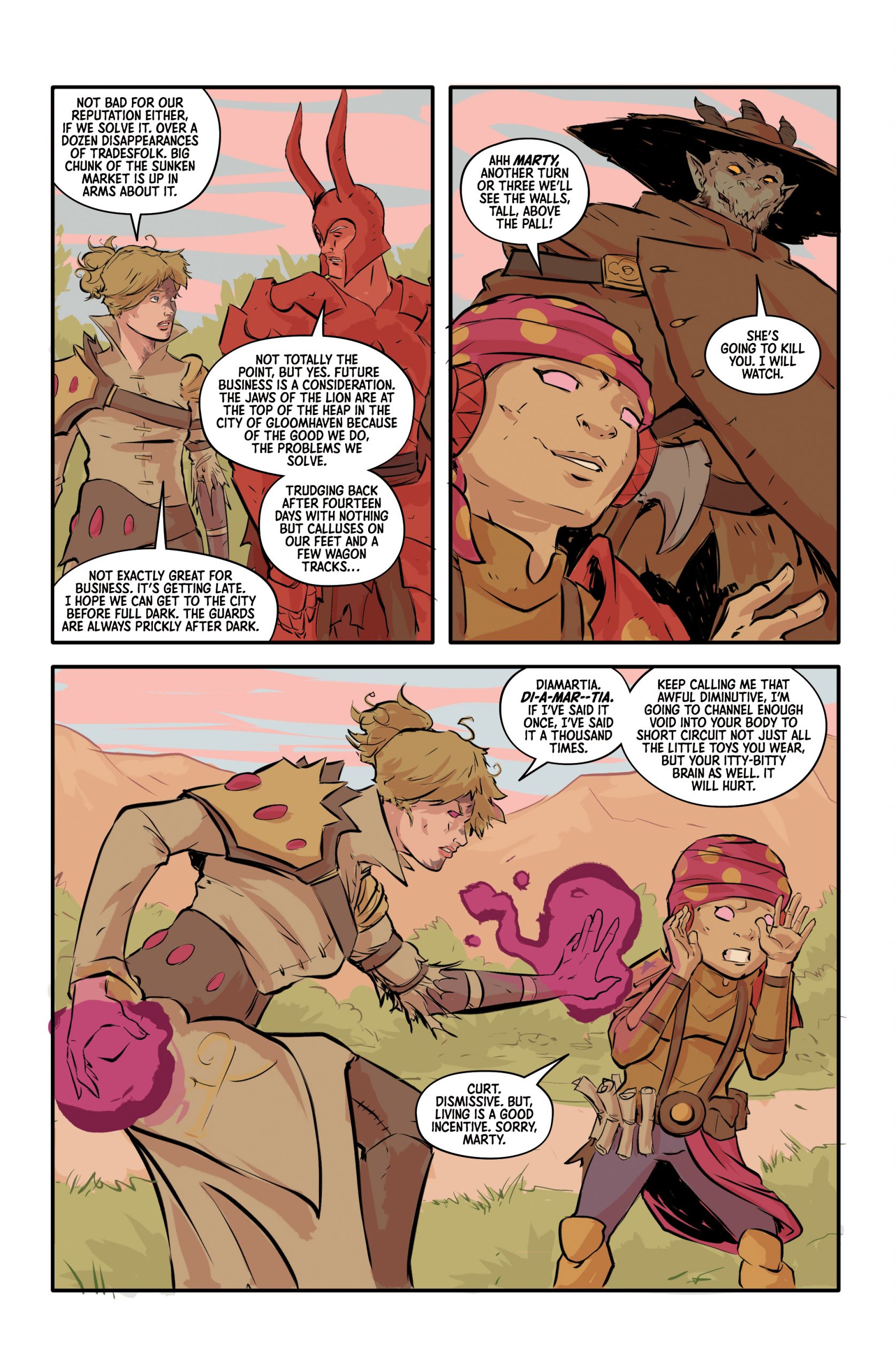 Gloomhaven is a fantasy-themed, campaign-based tactical board game for 1 to 4 players designed by Isaac Childres and published by Cephalofair Games in 2017. Gloomhaven: A Hole in the Wall is the follow-up to the official comic book adaptation Gloomhaven: Fallen Lion. In this second installment the creative team delves deeper into the group dynamics of the Jaws.