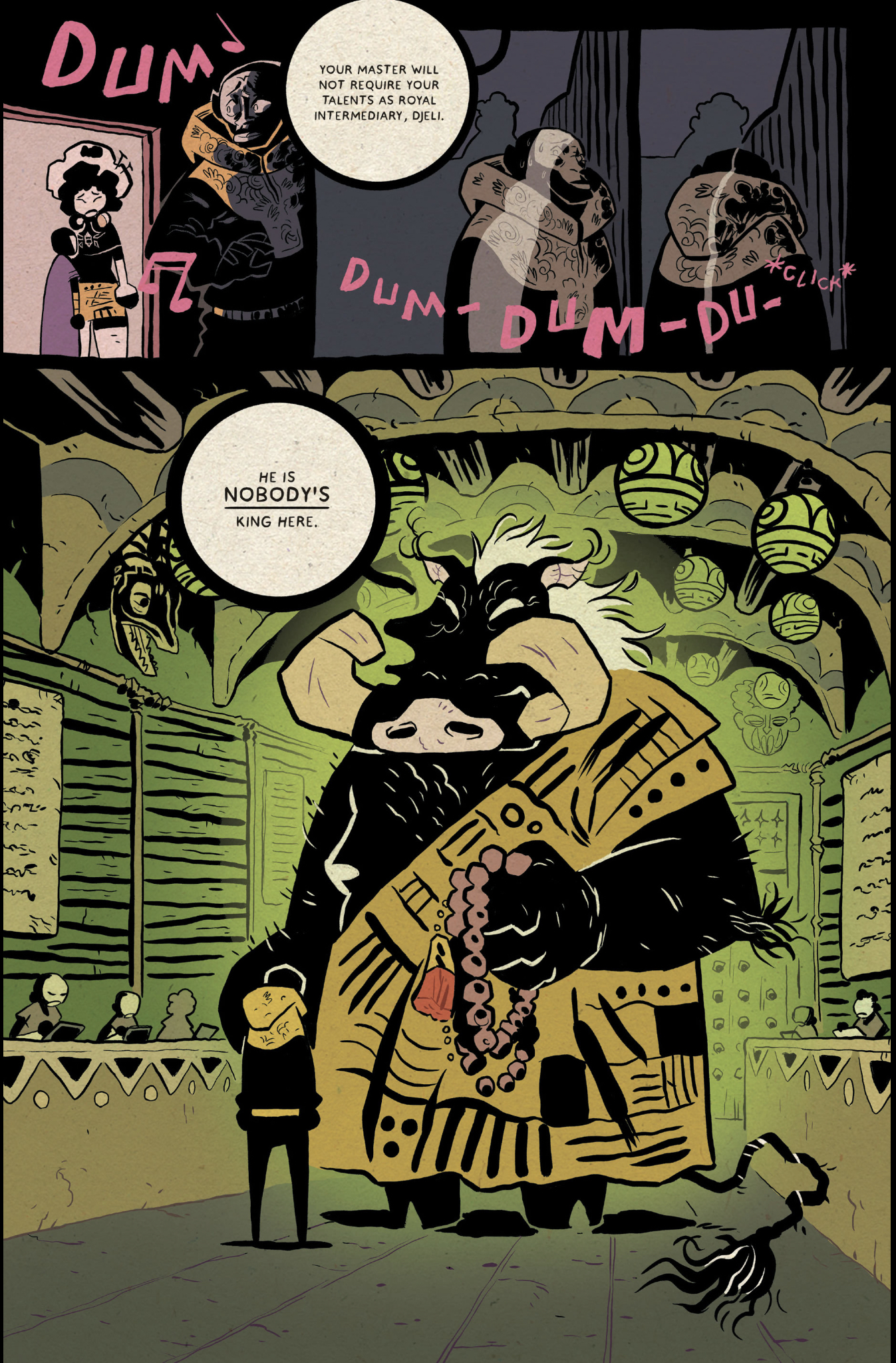 As much as Djeliya leans into oral traditions of storytelling and the importance of legacy, those ideas do get subverted in the very best of ways. Juni Ba pulls his reader in and points out that every story depends on the interpretations assigned to it by the listener (or reader). Everything is a matter of perspective, from the wanderings of a ne’er-do-well prince and the companion who acts as his moral compass, to the momentum of paranoia as it grows exponentially in an information vacuum. Legacy is only important when the lessons of the past are applied to the future, and dogma is a self-defeating ideal when followed without reason.