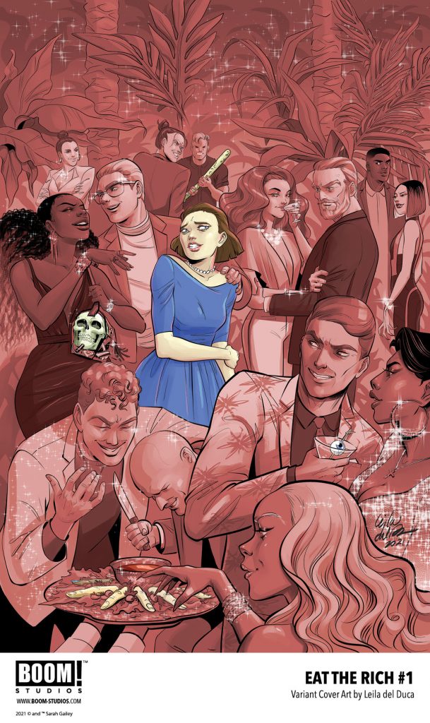BOOM! Studios revealed a first look at EAT THE RICH #1, the premier issue in a chilling new original five-issue comic book series from Hugo Award-winning author Sarah Gailey (The Echo Wife, Magic For Liars) with artist Pius Bak (Firefly, The Magicians), colorist Roman Titov, and letterer Cardinal Rae, about the unspeakable horrors lying in wait behind the idyllic lives of the one percent, available in August 2021.
