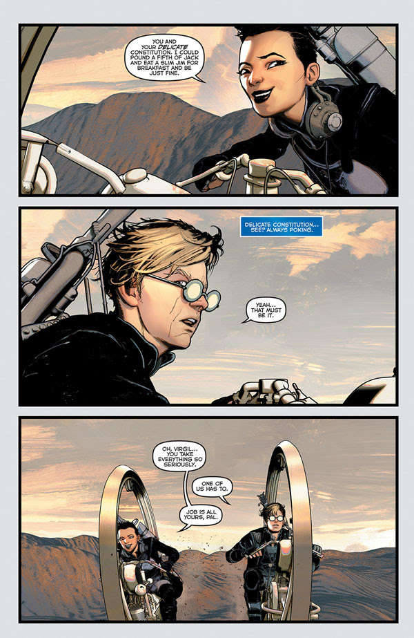 Van Dyke added: “Brian’s designs for this are crazy fun, crazy creatures, monobikes, a lot of steampunk stuff. It’s really interesting to think of Hell as just another world, with doctors, lawyers, etc., that sometimes its natives would crossover to our world through “soft spots” and that’s why the things from this world fit our legends of Hell, because that is where we got the idea from in the first place. It’s the ultimate to get to reinterpret and modernize myths.”