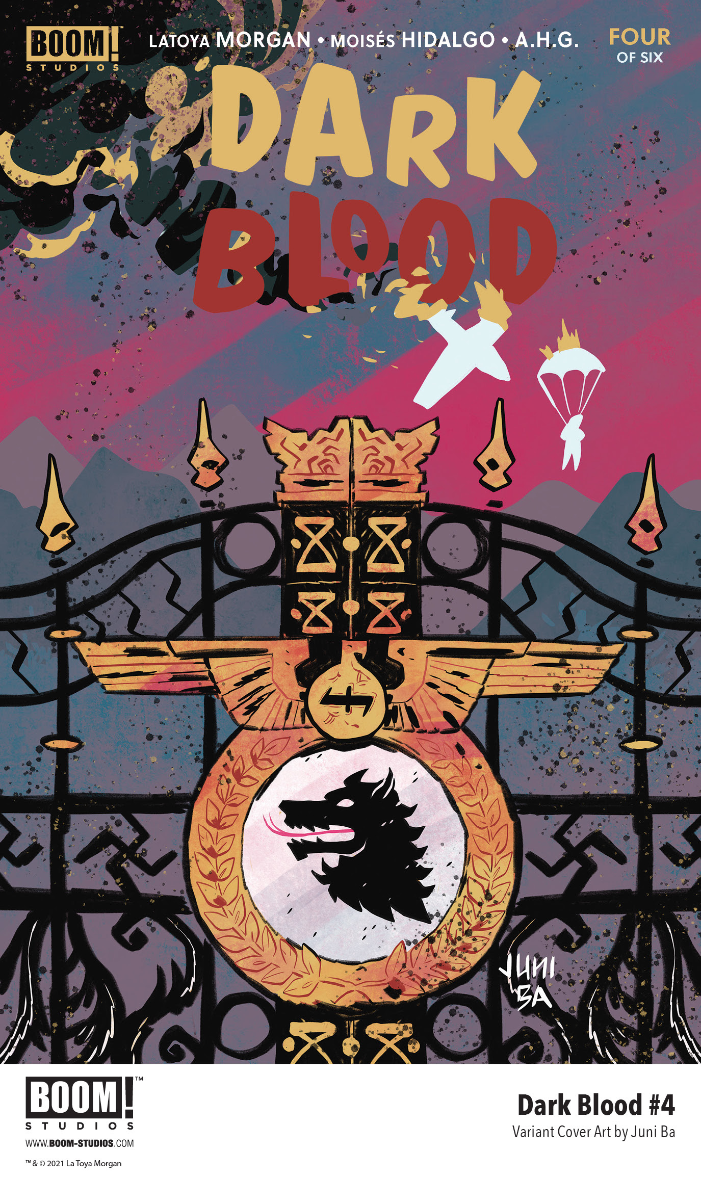 DARK BLOOD #4 features main cover art by acclaimed artist Valentine De Landro (Bitch Planet), and variant covers by illustrators Juni Ba (Excellence) and Jonboy Meyers (Spawn).