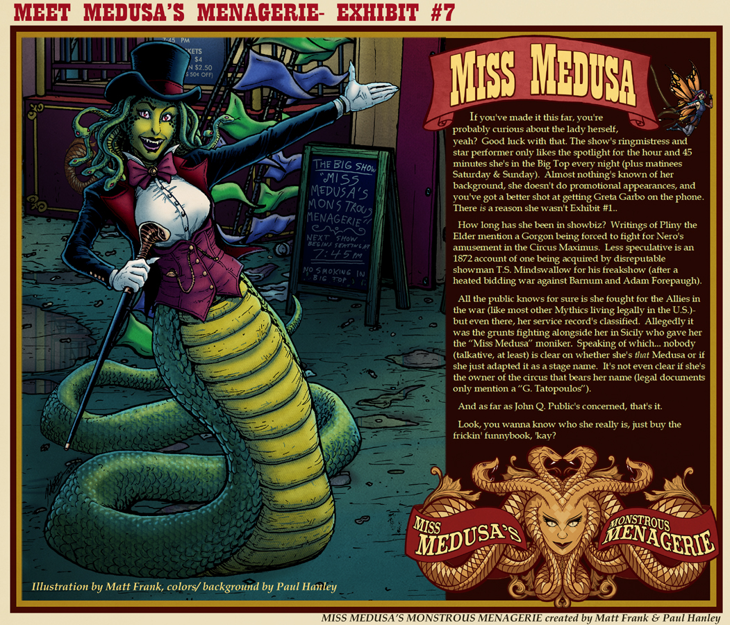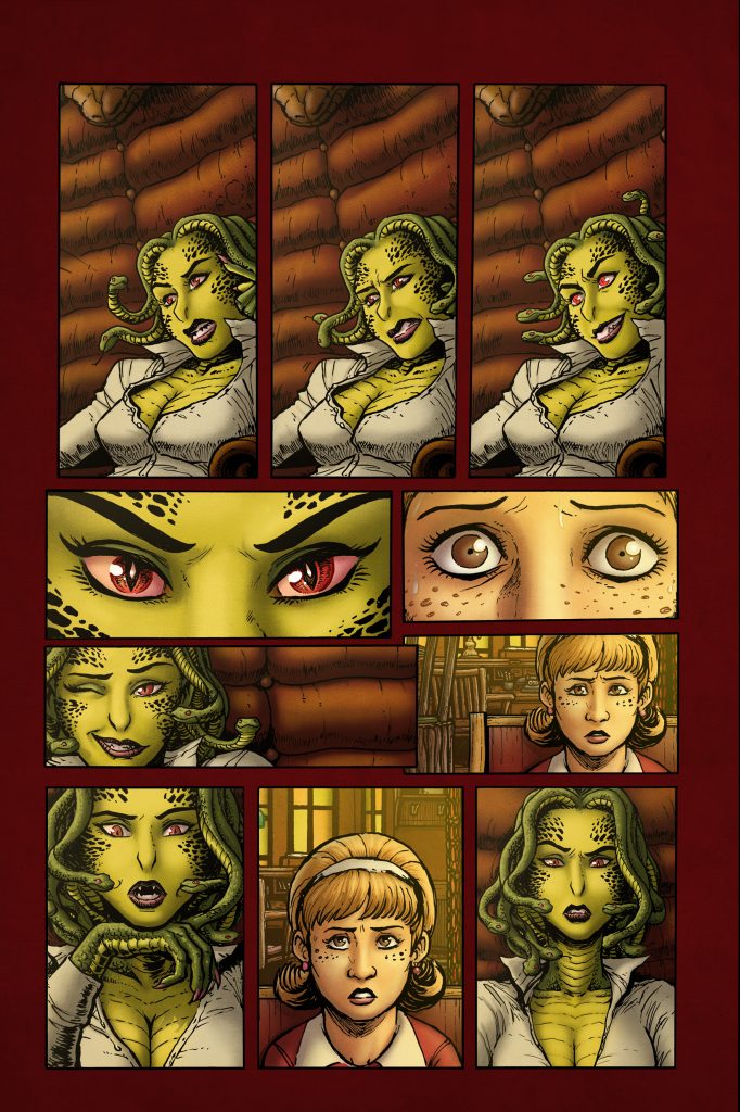 Indie comics juggernaut Unlikely Heroes Studios is proud to announce its collaboration with writer/artist Paul Hanley (Doctor Who, The Unthinkables) and writer/artist Matt Frank (Godzilla, Transformers, TMNT) to publish a thrill ride of a new series just in time for spooky season – Miss Medusa’s Monstrous Menagerie, scheduled for public release in November 2021.