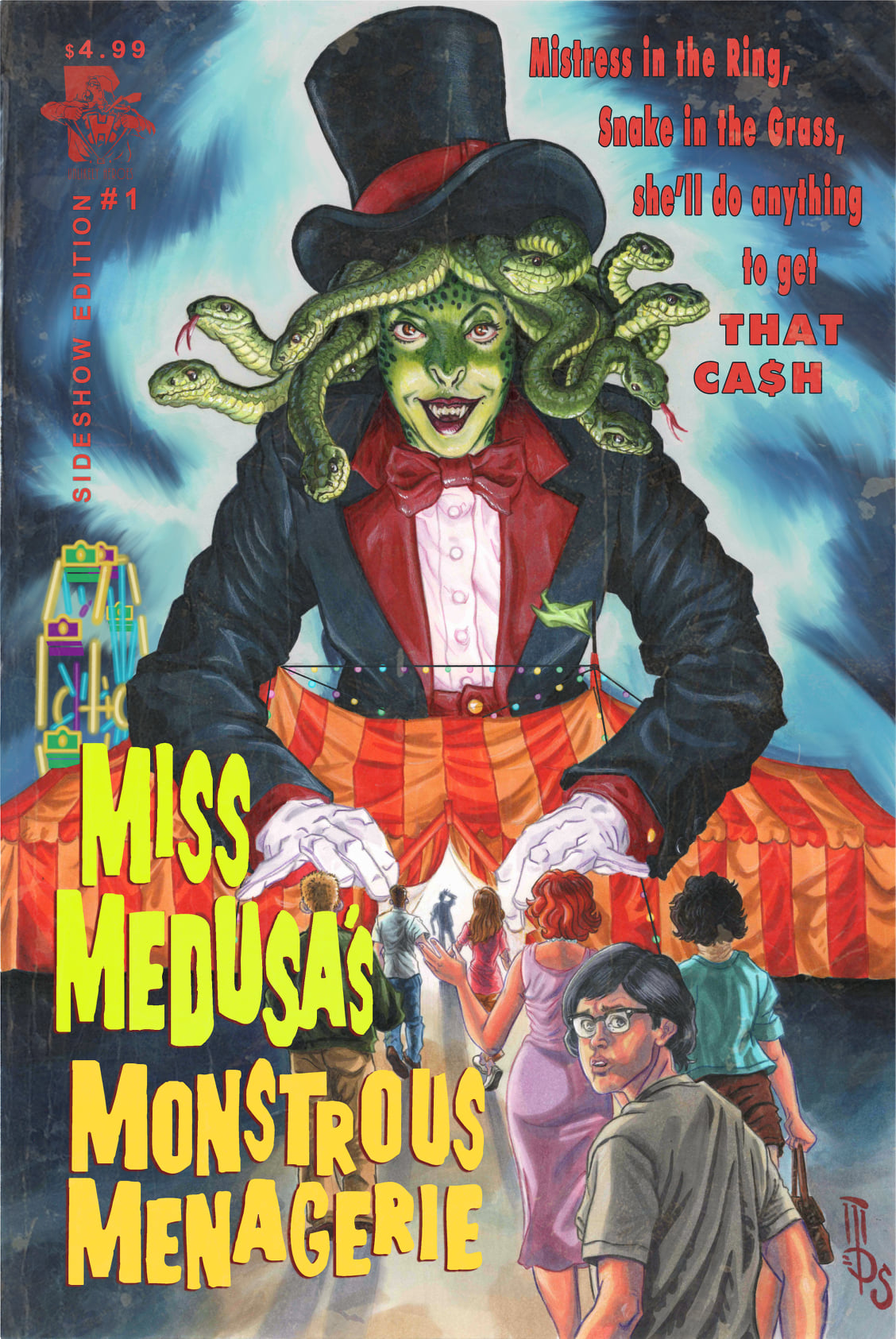 Achieving Project We Love status AT LAUNCH, hitting goal in under 3 hours, and running until November 5th, the Miss Medusa’s Monstrous Menagerie Kickstarter features a badass set of backer premiums for all budgets, including a Sideshow Edition with different cover AND interiors, and a LIFESIZE (6.6 ft tall) Miss Medusa cardboard standee so you can bring the circus home!