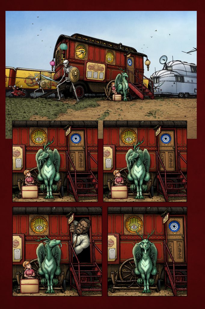 “I love Unlikely Heroes and I’m hyped to be doing a second series with them”, says Paul Hanley, writer, background artist, and colorist for the first issue. “A book like this, four years in the making, thousands of hours of research about creatures and carnies…we couldn’t go to any ol’ rubes on this one. UHS is with it and for it- a Sixteen Wagon this circus would be lost without.”