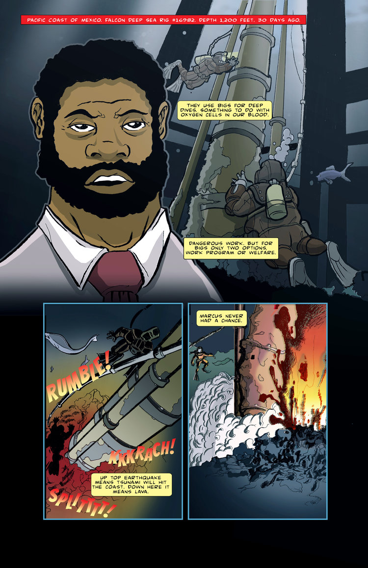 (From the publisher) My name is Brian Chuck and I am the writer, editor, and publisher of UpChuck Comics an independent comic book company in Dallas, TX. UpChuck’s main serial title BiGS is a 4 issue sci-fi eco-thriller an X-Men meet Brave New World that is being released as a trade paperback.