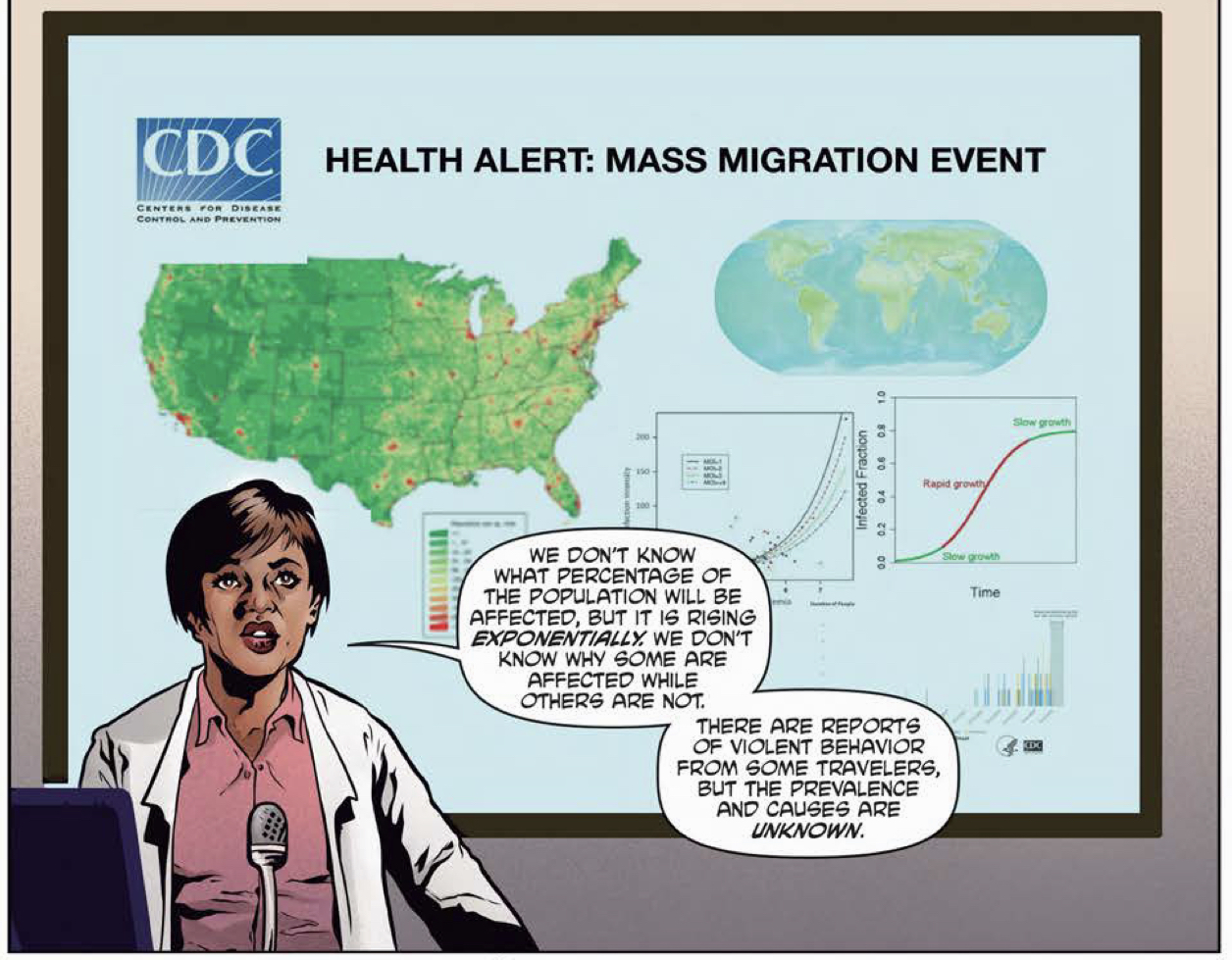 Another point in the cool column comes from Colin Devonshire’s background as a physician (did you catch that “MD” next to his name at the top of the article?). A practicing physician has a very different perspective on the whole “worldwide epidemic” concept (huh… topical), and that shows in the finer details of his writing. Sure, Rudy’s almost a doctor but he doesn’t really have that sense of compassion that some of his peers might. I have no doubt that Devonshire has known some co-workers just like that as he pulled from his experiences for this story. Going further into the nuts & bolts of the thing, I’m liking the way Devonshire is easing into the science behind the global crisis he’s concocted. Again, from a reader’s perspective there’s a degree of credibility built into this comic that makes the outlandish a little less crazy.