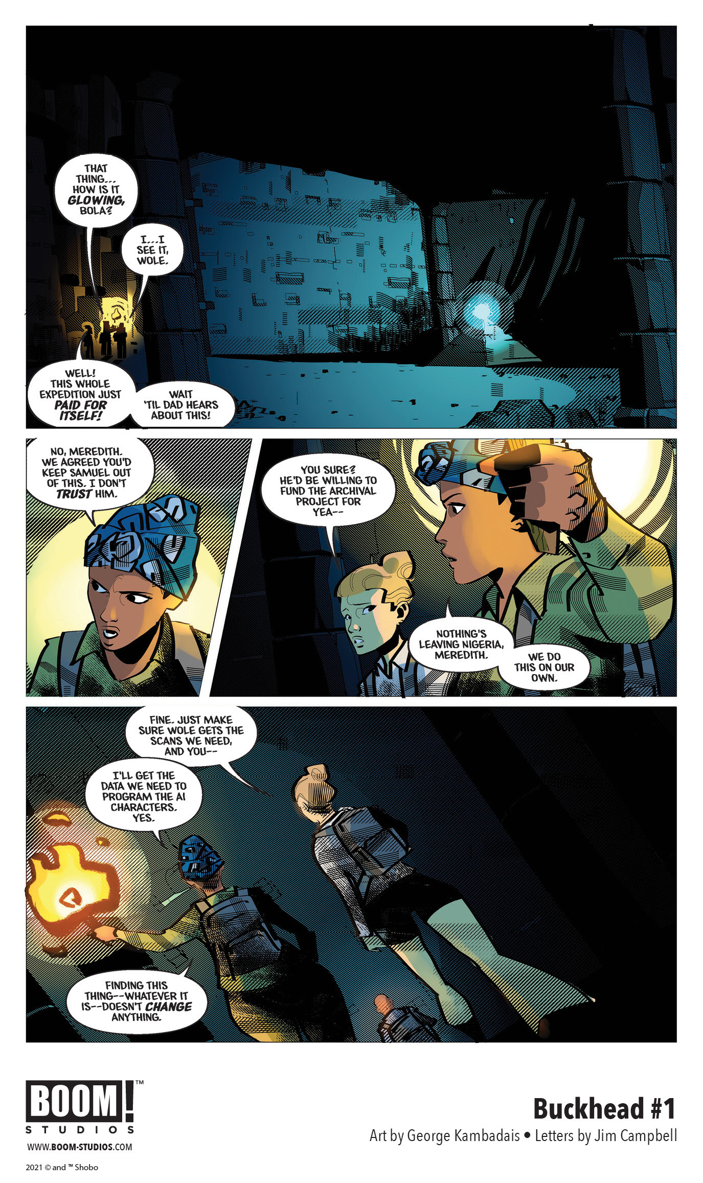 BOOM! Studios today revealed the first look at BUCKHEAD #1, the first of a five-issue limited series from rising star author Shobo (Outcasts of Jupiter), artist George Kambadais (The Black Ghost), and letterer Jim Campbell (Jim Henson’s Storyteller) about a Nigerian immigrant family meeting strange new people and dealing with unusual experiences in the mysterious town of Buckhead, USA. Available in December 2021.