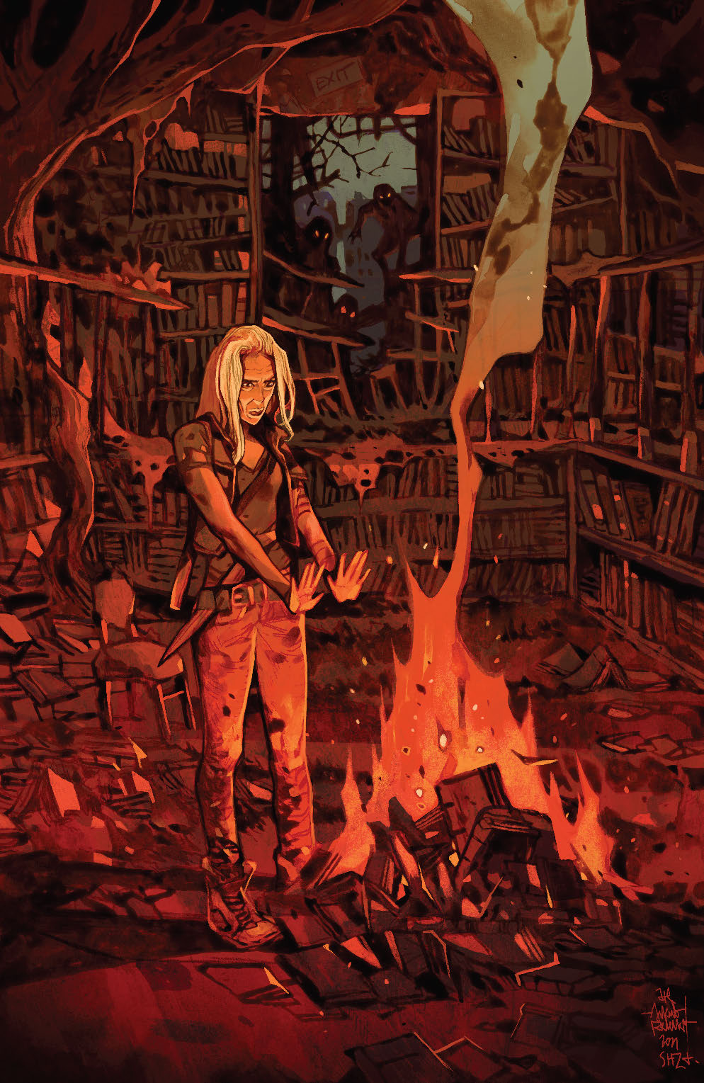 All of this… the attitude, the story’s tone, the atmosphere… is given its final touches through efforts of all of the book’s creative team. Joana Lafuente‘s colors accentuate the direction Jaro takes with his line work, sharpening the shadows and allowing just enough of the rough to show. Back on the shadows, that’s going to be an important point for this book, as we are talking about a world where the sun doesn’t shine and vampires are free to walk about the cabin at their leisure. For his part, Ed Dukeshire uses lettering to help tell the story, giving certain perspectives a definitive look (and maybe getting a little too emoji happy along the way). His work always seems to shine, even in comics that don’t give him as much room to run.