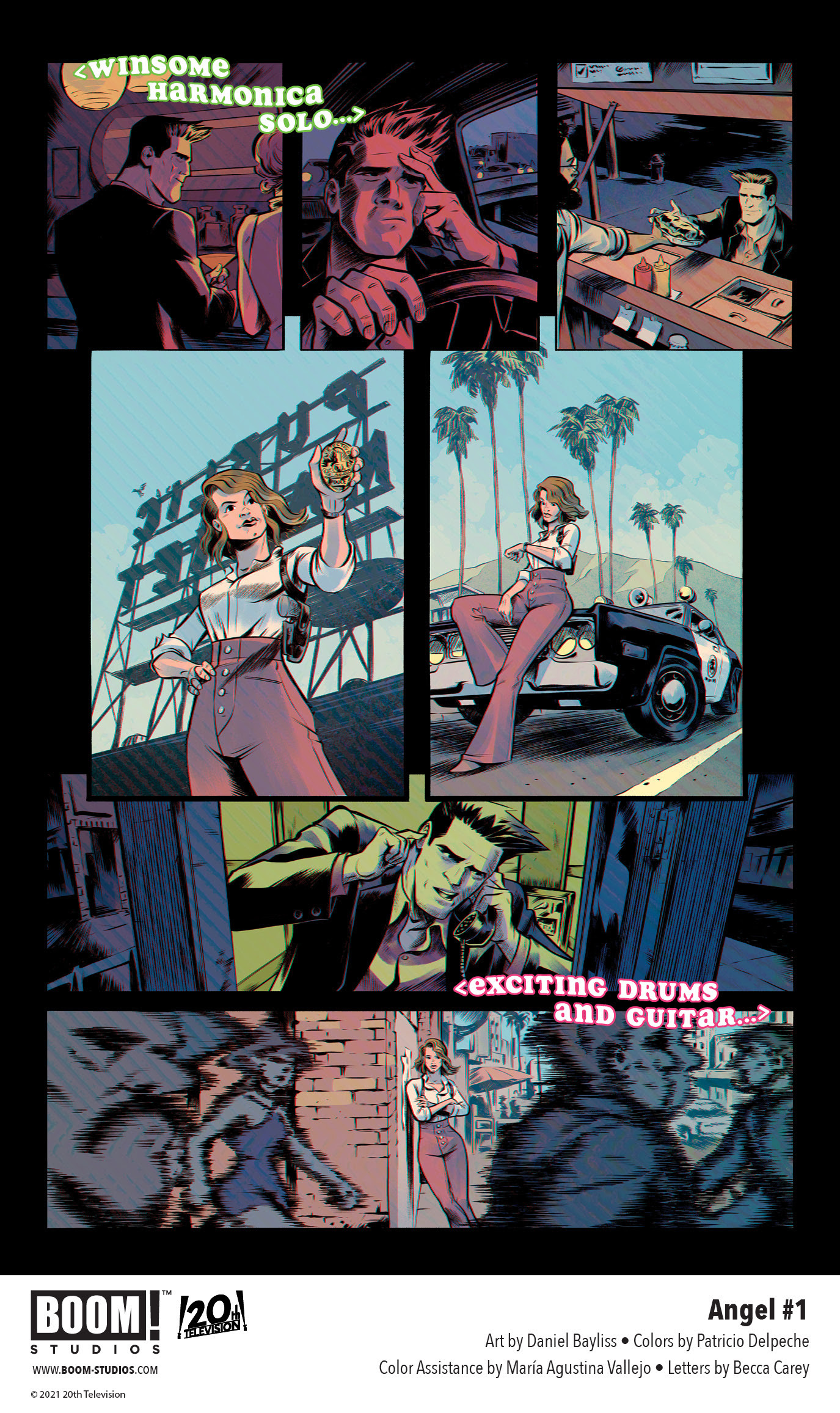 BOOM! Studios revealed a first look at ANGEL #1, the premiere issue of a brand new eight-issue comic book series available beginning January 2022. Producer and director of AMC’s Halt and Catch Fire and Eisner Award-nominated writer Christopher Cantwell (Iron Man, The United States of Captain America), artist Daniel Bayliss (WWE The New Day: The Power of Positivity, Labyrinth: Coronation), colorist Patricio Delpeche (Origins), and letterer Becca Carey (Wonder Woman) shine the spotlight on everyone’s favorite vampire with a soul in the role of a lifetime . . . Detective Angel.