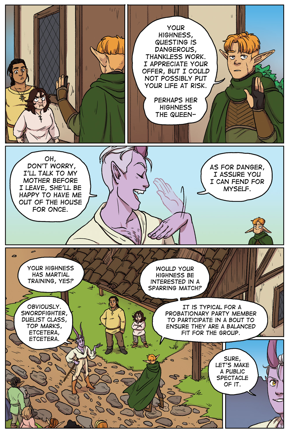 Every day is basically spring break for Eugene, but outside the palace walls he crashes into a hard reality: the system that kept him safe in his silk-sheeted bed isn’t particularly concerned with the well-being of anyone who isn’t him. Eugene will have to level-up his awareness if he means to be a real hero, and time is running short!