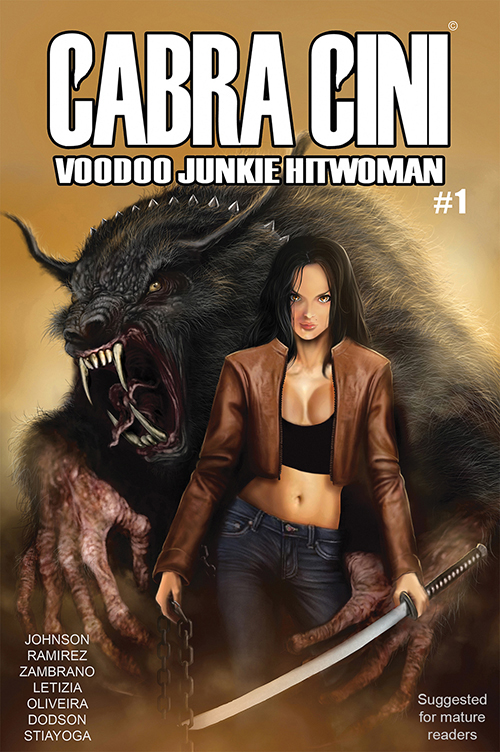 Written by Johnson (Geek-Girl, The Almighties), illustrated by Nathan Ramirez (Cannibal Family, Red Sonja), with Bruno Letizia, Pablo Zambrano & Jorge Oliveira – Cabra Cini: Voodoo Junkie Hitwoman #1 is live on Kickstarter now, and you can get to it at www.cabracini.com