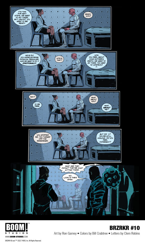 BOOM! Studios today revealed a first look at the newest issue in the final story arc of the record-breaking hit comic book series BRZRKR by the iconic Keanu Reeves and NYT bestselling co-writer Matt Kindt (Folklords, Grass Kings), acclaimed artist Ron Garney (Wolverine, Captain America), colorist Bill Crabtree (BPRD), and letterer Clem Robins (Hellboy). Continuing in BRZRKR #10, discover the unfolding final chapter of the epic story that’s sold over a million copies, this September!