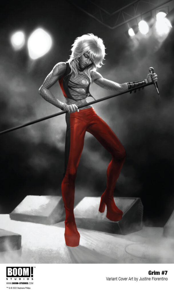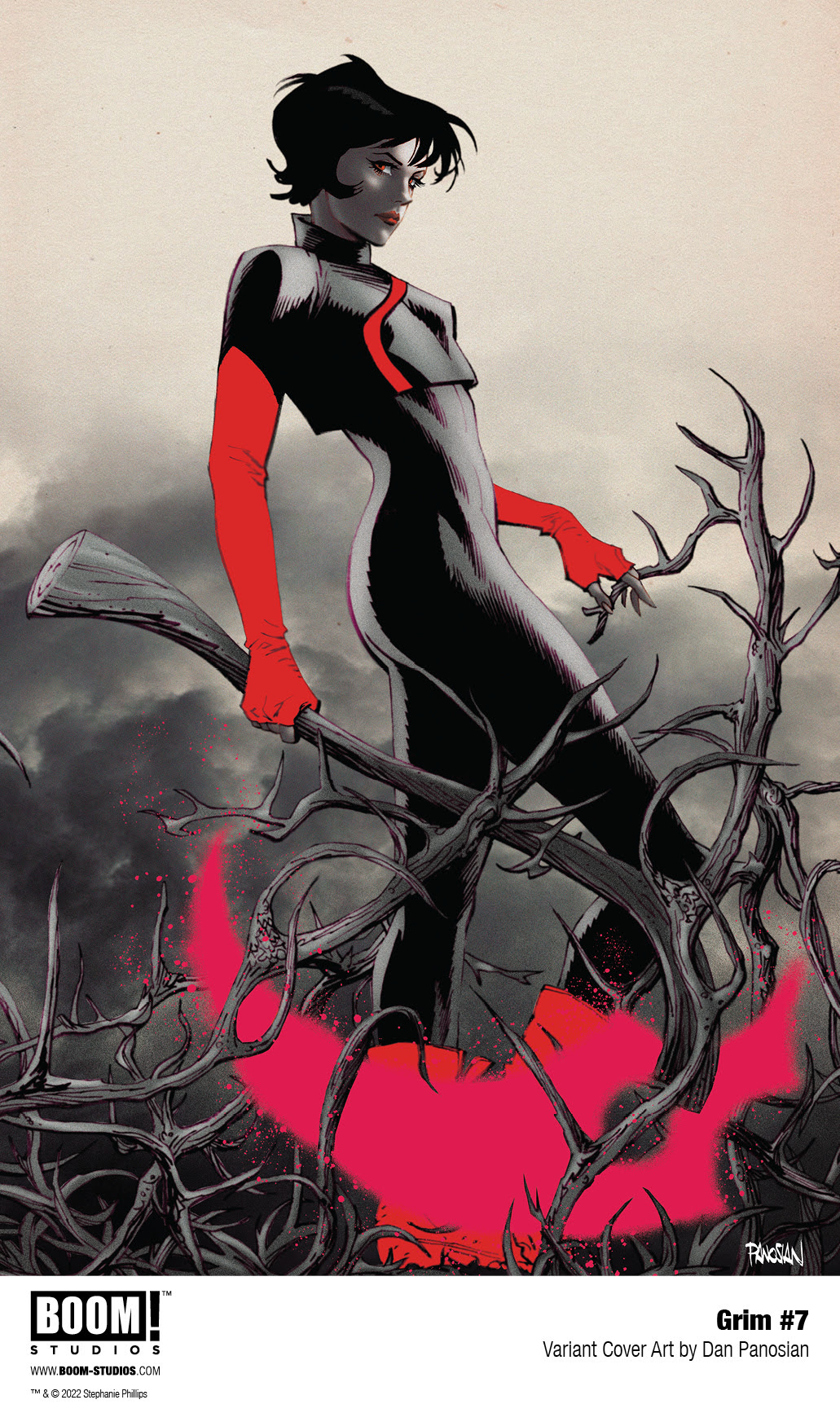 GRIM #7 features main cover art by series artist Flaviano, and variant cover art by acclaimed illustrators Justine Florentino (Something is Killing the Children) and Dan Panosian (Alice Ever After)