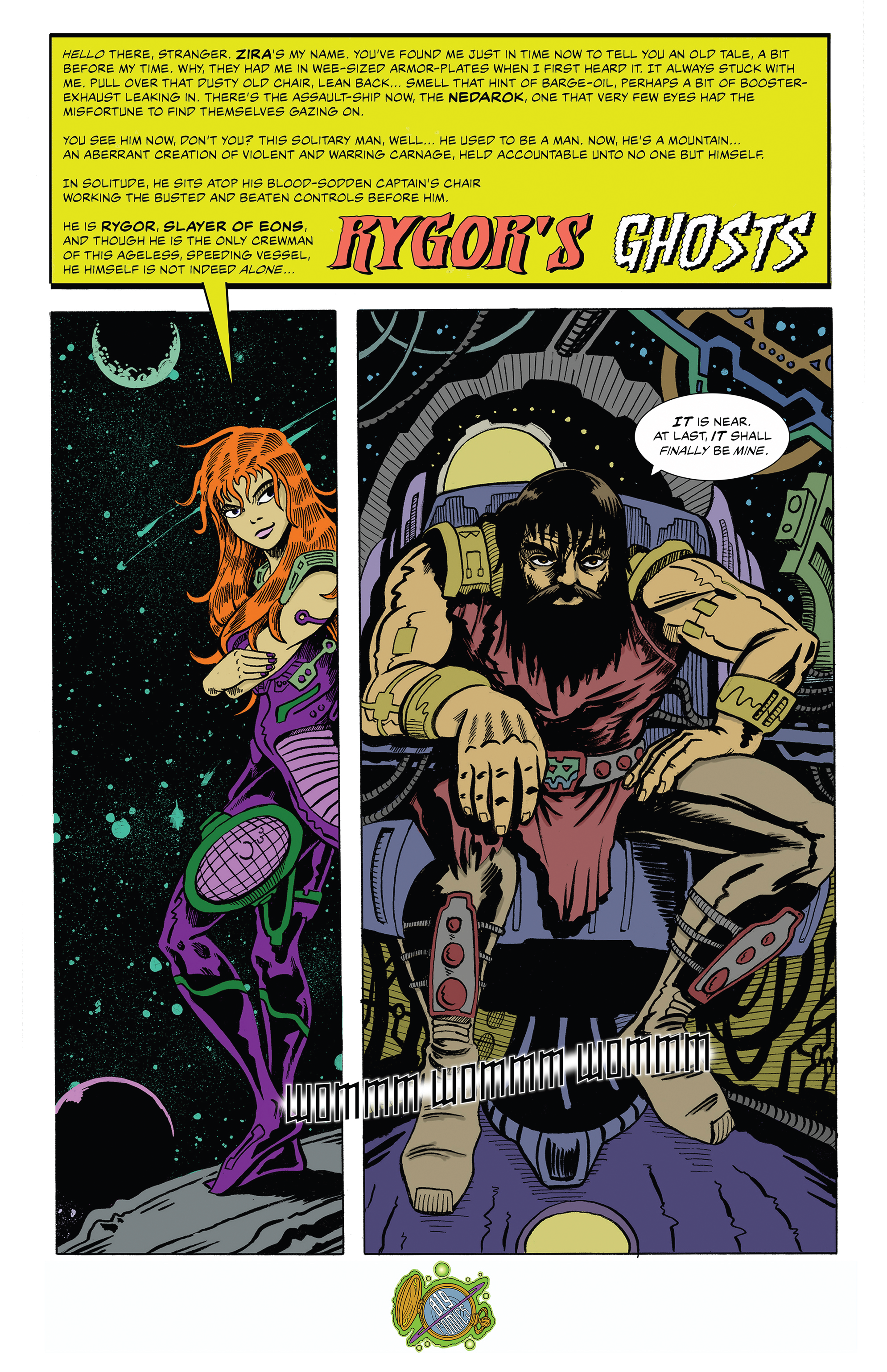 Y’know, you really should go back and check out those other reviews, because everything I’ve said still applies, with one addendum. Cruising back through all three comics, earliest to latest, is like reading a flowchart with a spotlight on how a motivated team of creators can improve their craft. Team Pinsoneault still gives all the nods to the classic comics that inspired them to create. The series continues in its anthology format, with title character Zira herself offering intros to each story. The dialogue still works, jumping a bit now & then but always managing to come back around to stay on point. The tales embrace galaxy-spanning realms of fantastic adventure the likes of which Howard and Burroughs pioneered.