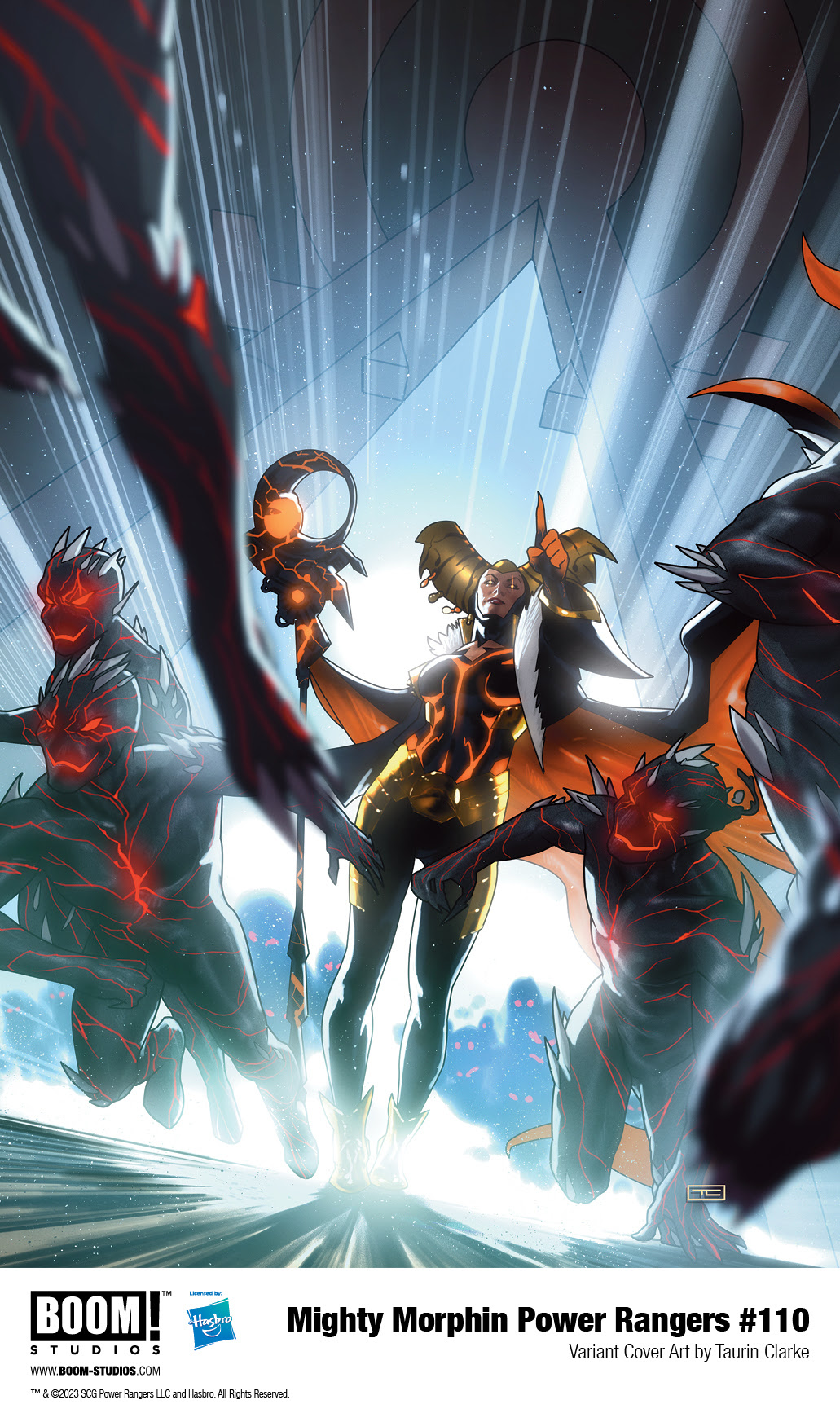 MIGHTY MORPHIN POWER RANGERS #110 features main cover art by star artist Taurin Clarke (Miles Morales: Spider-Man) and variant covers by acclaimed illustrators Bon Bernardo (MightyMorphin), InHyuk Lee (Seven Secrets), Elizabeth Torque (The Mighty Captain Marvel), and Goñi Montes (Mighty Morphin Power Rangers).