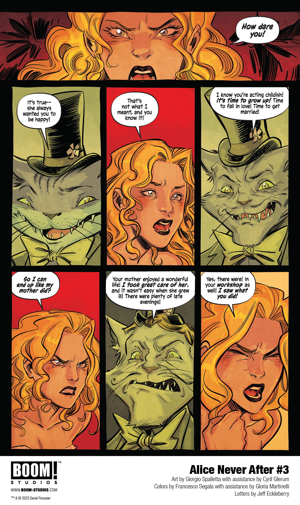 BOOM! Studios revealed a first look at ALICE NEVER AFTER #3, the next issue of the new five-issue original series from superstar artist and writer Dan Panosian (An Unkindness of Ravens, Canary), artist Giorgio Spalletta (007: For King and Country), colorist Francesco Segala, and letterer Jeff Eckleberry. Continue to blur the lines between fantasy and reality this Summer in ALICE NEVER AFTER, only at BOOM! Studios, available September 2023.