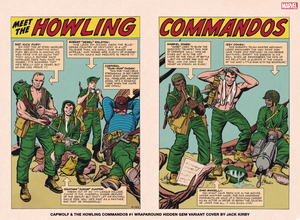 Check out an assortment of covers, including a Hidden Gem wraparound piece using Jack Kirby art of the original Howling Commandos and the issue two cover! And be there when the Marvel Universe hears Capwolf’s howl once again this October! For more information, visit Marvel.com.