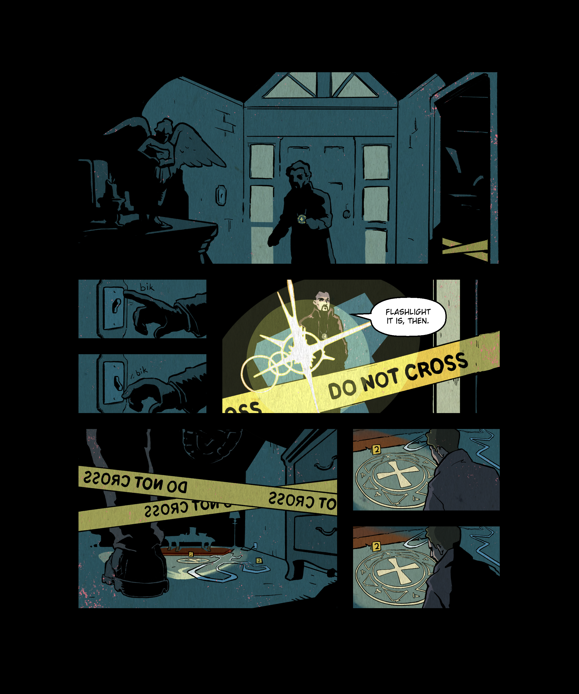 Team Route doesn’t end there. There’s backup art handled by Omar Montoya, which can be found throughout the book, adding to but not working against the established style. That’s a tall order for an artist whose inclination is for their personal touches to stand out. Finally, rounding out the look of Darkest Route as the inker, colorist, & letterer is Bea McCormick. I will always sing the praise of a good letterer (which she is), but looking back at the way color is used in this comic I’m gonna have to say that McCormick’s work pays off. Tone and atmosphere are all-important for a comic like this, and much of that is found, not only in the colors, but also in the way they’re used.