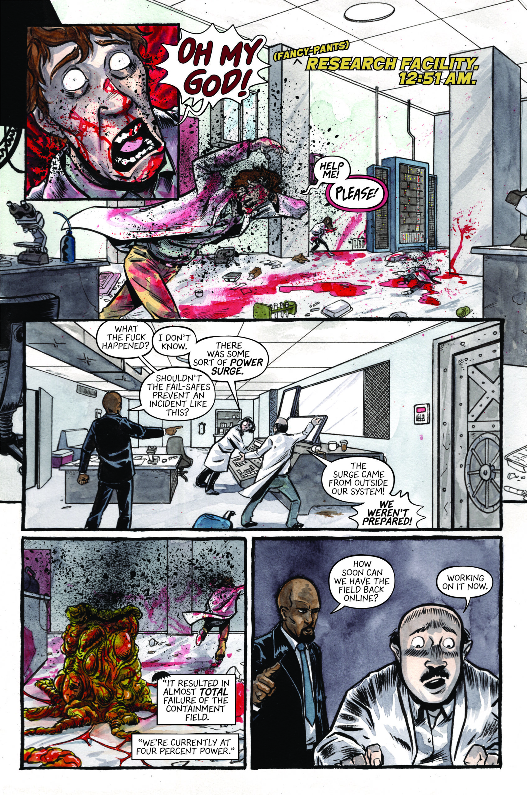 “When Bob and I started this story we knew we wanted to do a B-movie parody, but ended up making an A-plus comic, thanks to the hard work of Kelly Williams,” said Kevin Cuffe. “Kelly just slays every page while keeping things fun—gross, goopy and beautiful—like a mid-summer sunset in swampy Kankakee county.”