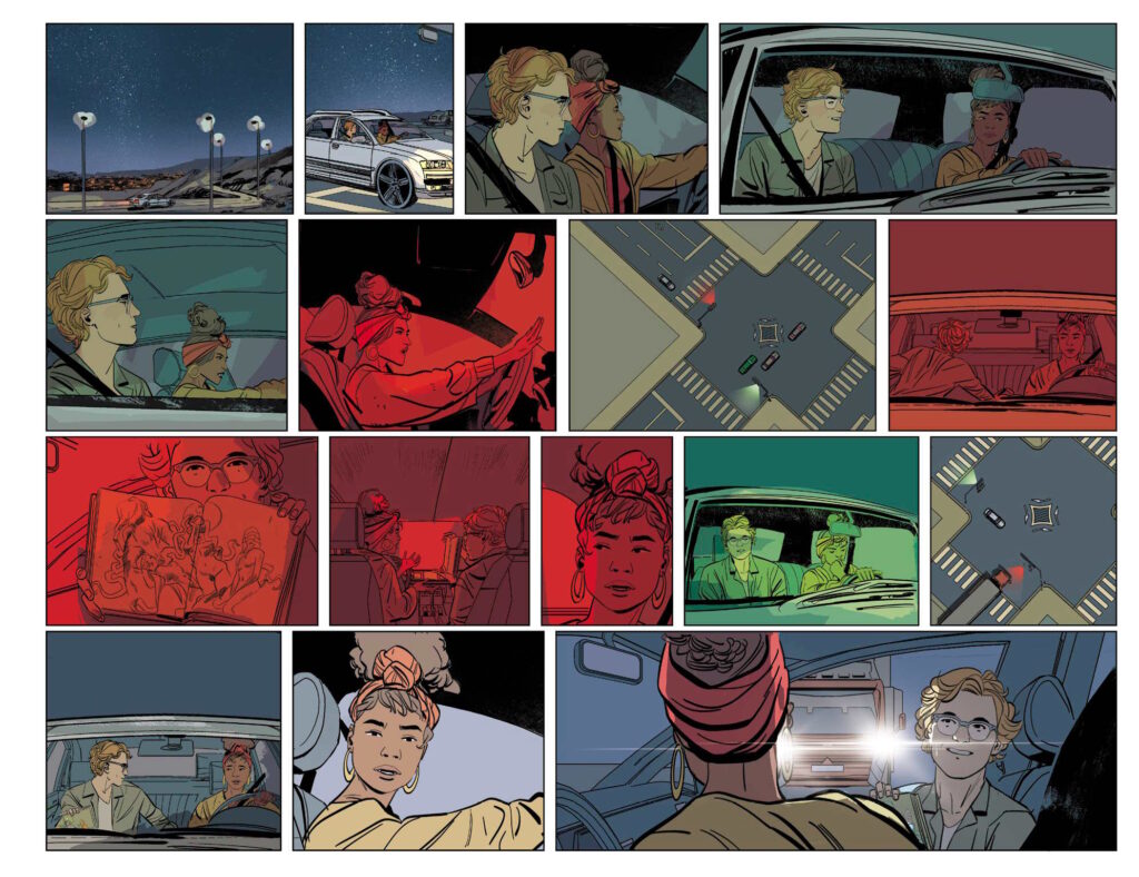 I have to give my unadulterated respect to writer Zack Kaplan because it isn’t every comic that motivates me into a little research before writing a review. It started with a look into Bostrom’s theory of reality as an advanced simulation, and morphed into a look at the Kübler-Ross model when June’s quest looked like it was following the Five Stages of Grief. The last feather in Kaplan’s cap that I want to mention is that he takes another roll of the dice & holds back from letting June be totally likable. In most cases, this kind of story would follow a go-getter with a heart of gold, but Kaplan’s spin lets June come across as self-centered and more than a little bull-headed. You might not hate her, but you may want to tell her get her head on right and she’s a stronger character for it.