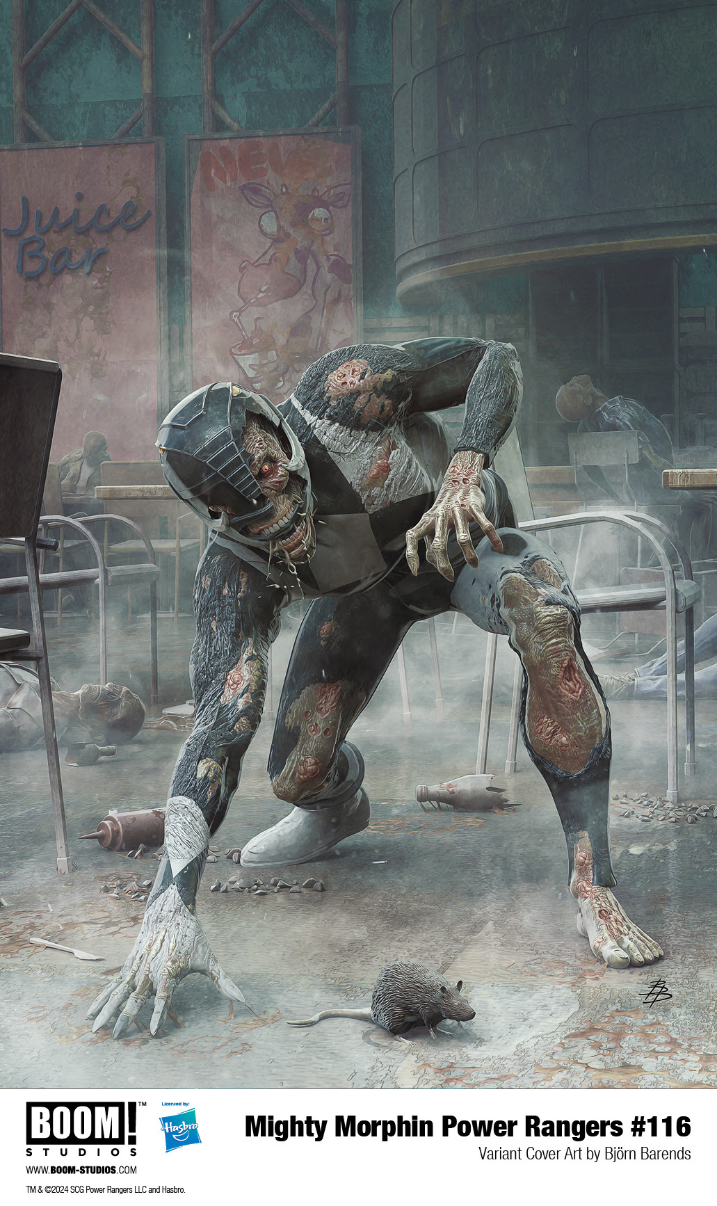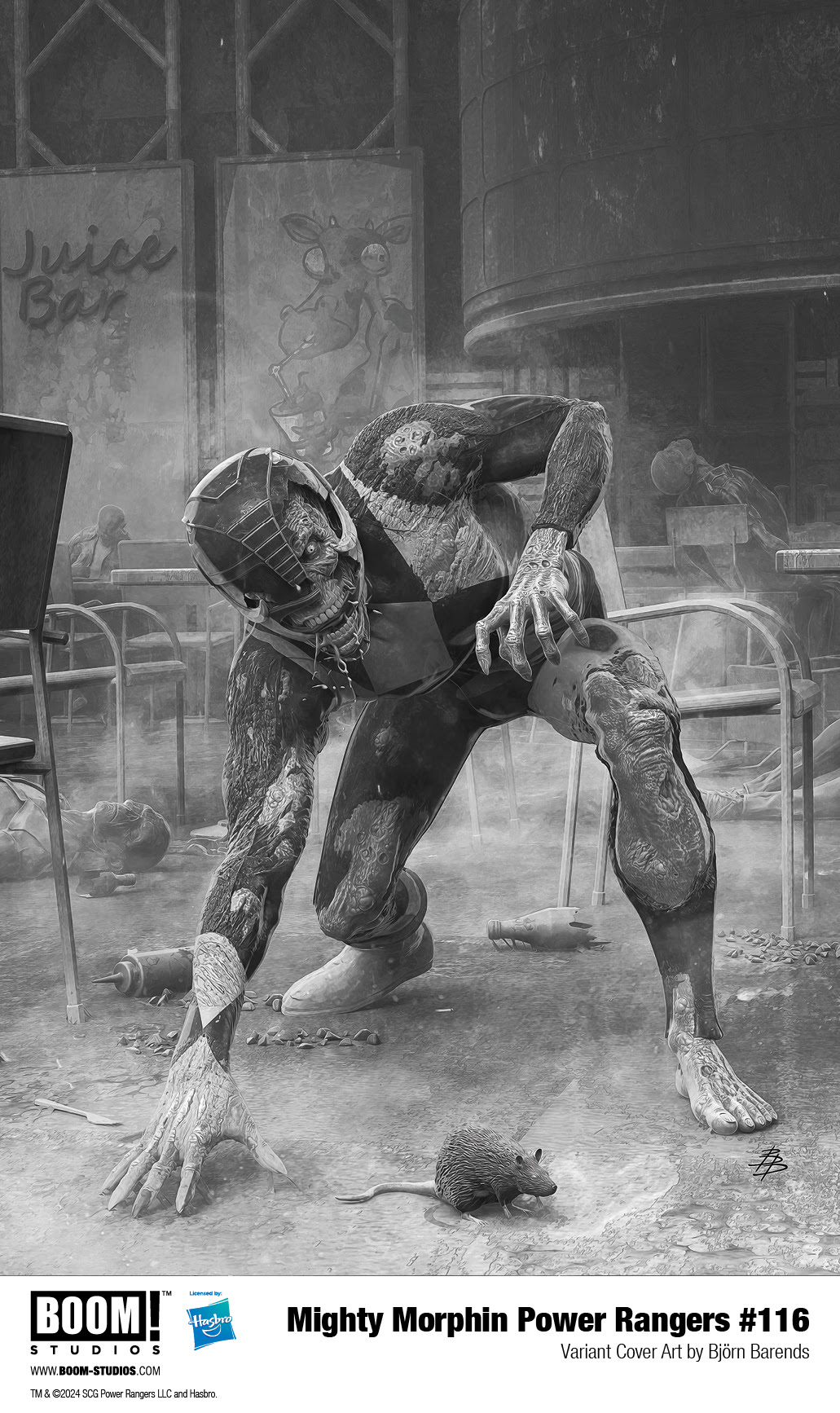 MIGHTY MORPHIN POWER RANGERS #116 features main cover art by star artist Taurin Clarke (Miles Morales: Spider-Man) and variant covers by acclaimed illustrators Björn Barends (Spawn), Goñi Montes (Mighty Morphin Power Rangers), and Zu Orzu (Grim).