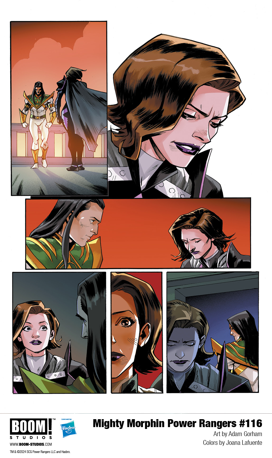 BOOM! Studios, under license by leading toy and game company Hasbro, Inc. (NASDAQ: HAS), revealed a first look at MIGHTY MORPHIN POWER RANGERS #116, the continuation of the DARKEST HOUR event, taking place after the bold and greatly anticipated Reunited, Recharged era of Mighty Morphin Power Rangers. The superstar creative lineup includes writer Melissa Flores (Power Rangers, The Dead Lucky), artists Adam Gorham (Jughead: The Hunger) and Marco Renna (Once & Future, Klaus), colorist Joana Lafuente, and letterer Ed Dukeshire, in the continuation of this monumental 12-month event, available in January 2024.