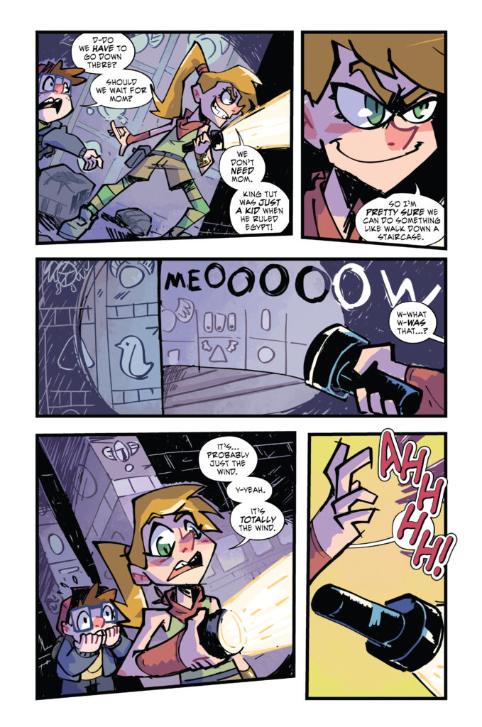 I’m beyond excited for readers to join siblings Otto and Nan as they chase Princess Tiaa–the adorable “Mummy Cat”–throughout Egypt. Co-writing and collaborating with my older sister, Kim Pangburn Shearer, is a bonding experience I’ll forever cherish, and we’re fortunate to have our words brought to life by the ever-talented Nic Touris. With TWO stories told through TWO unique perspectives with TWO differing art styles in ONE book, we’re offering a little bit of everything for middle-grade readers. Humor, action, the supernatural, emotional beats, and educational components–it’s an adventure for all!