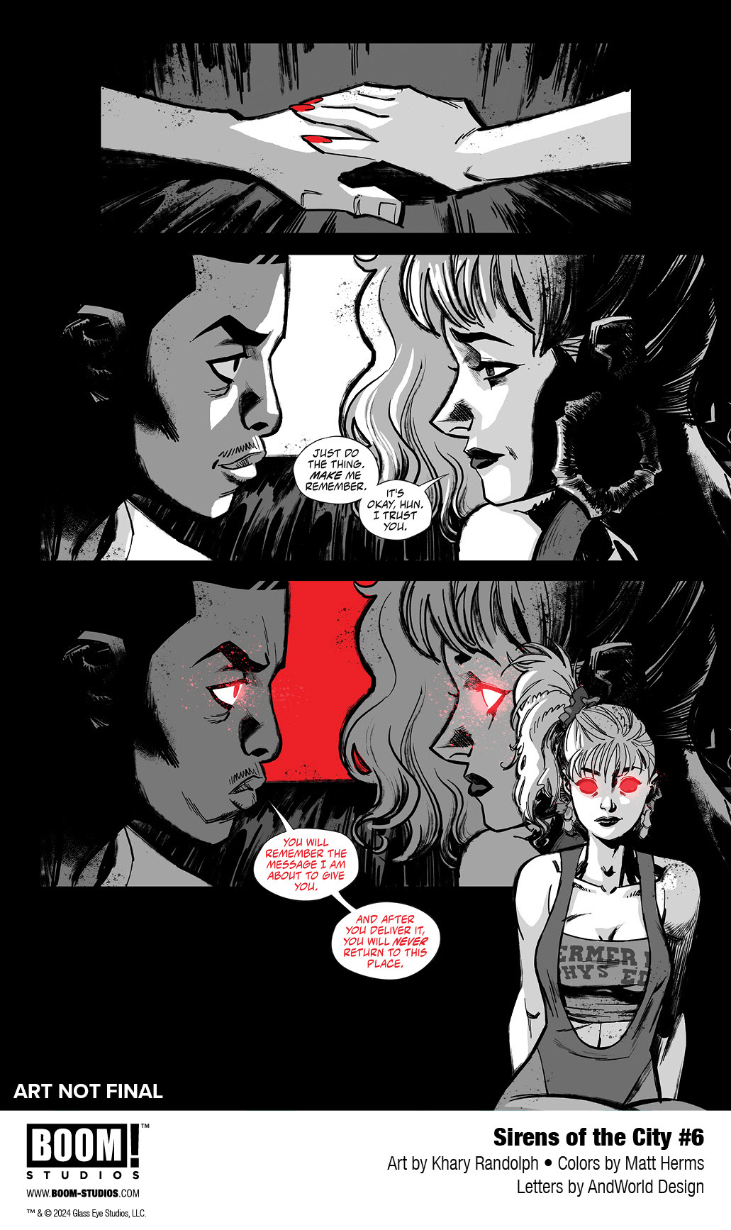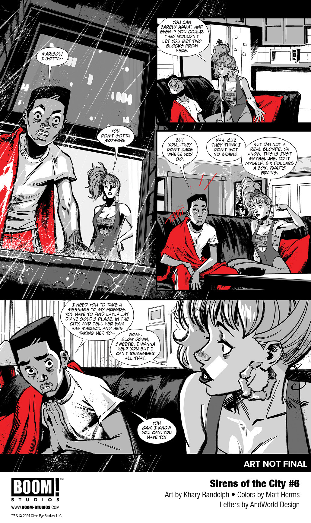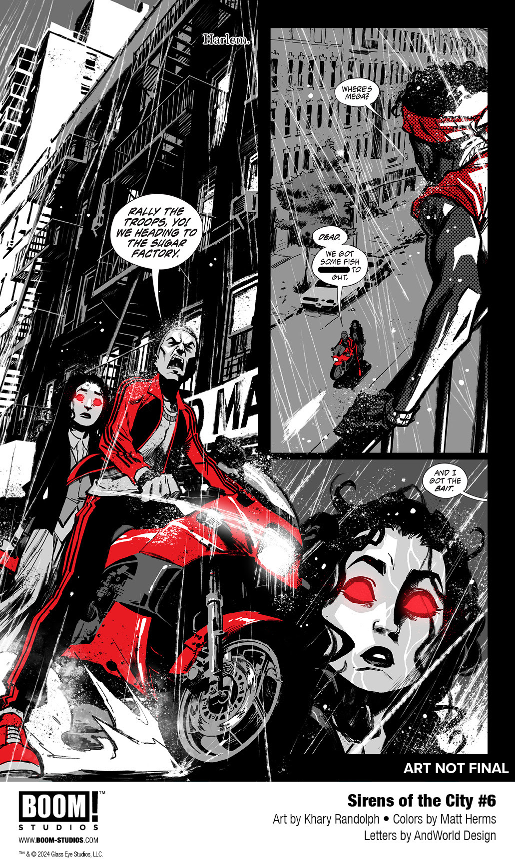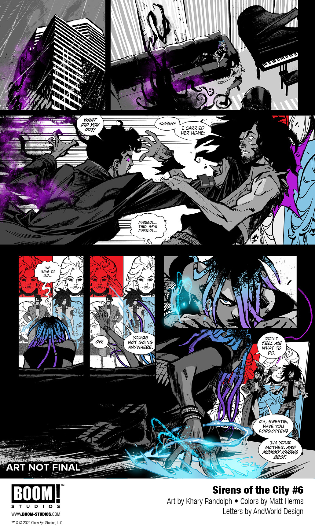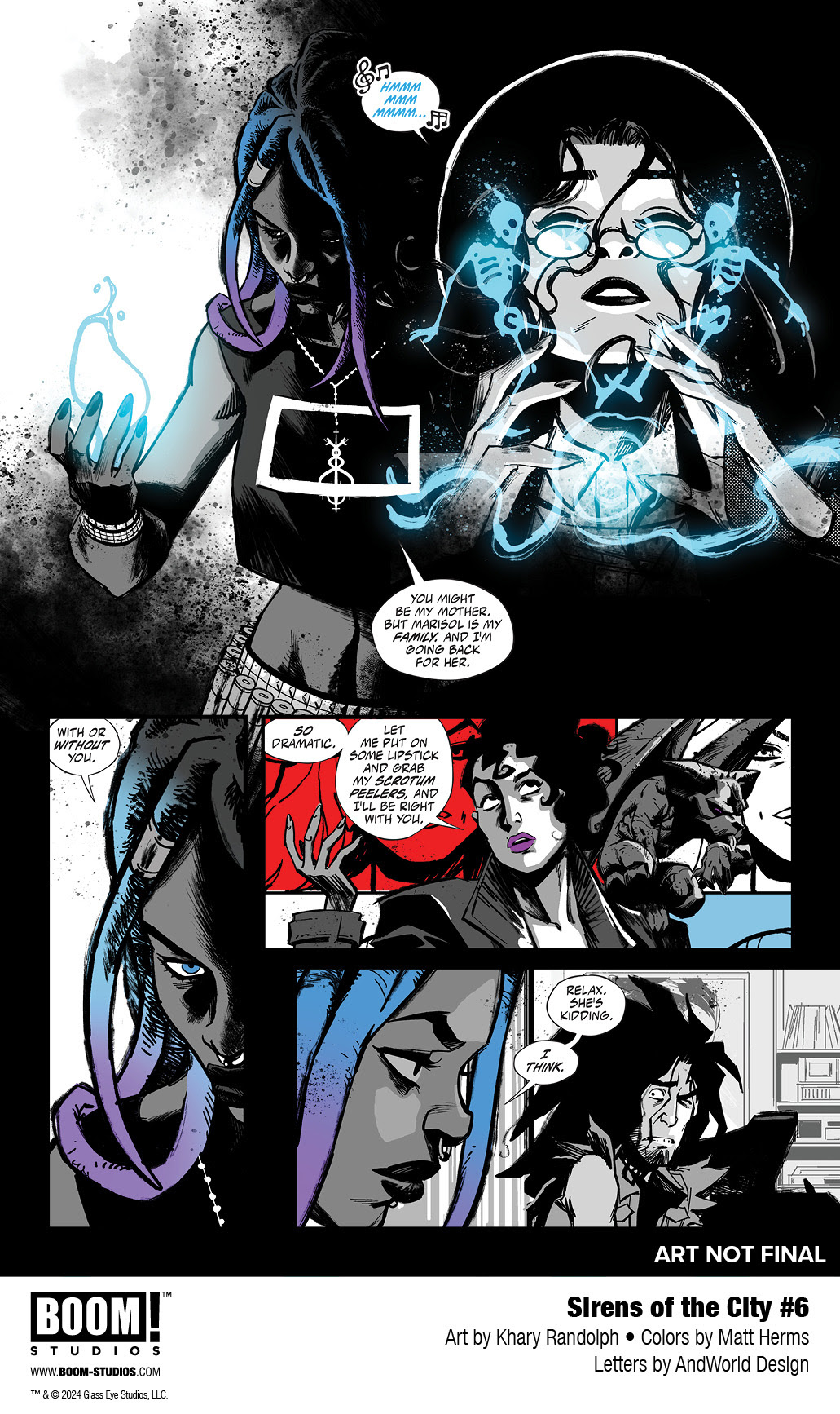 BOOM! Studios today revealed the anticipated first look at SIRENS OF THE CITY #6, the FINAL issue of the gritty six-issue urban fantasy from the superstar creative team of writer Joanne Starer (Painkiller Jane), artist Khary Randolph (Excellence), and letterer AndWorld Design, coming to comic shops January 2024.