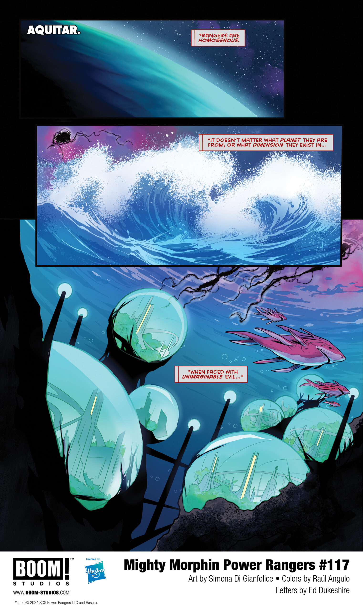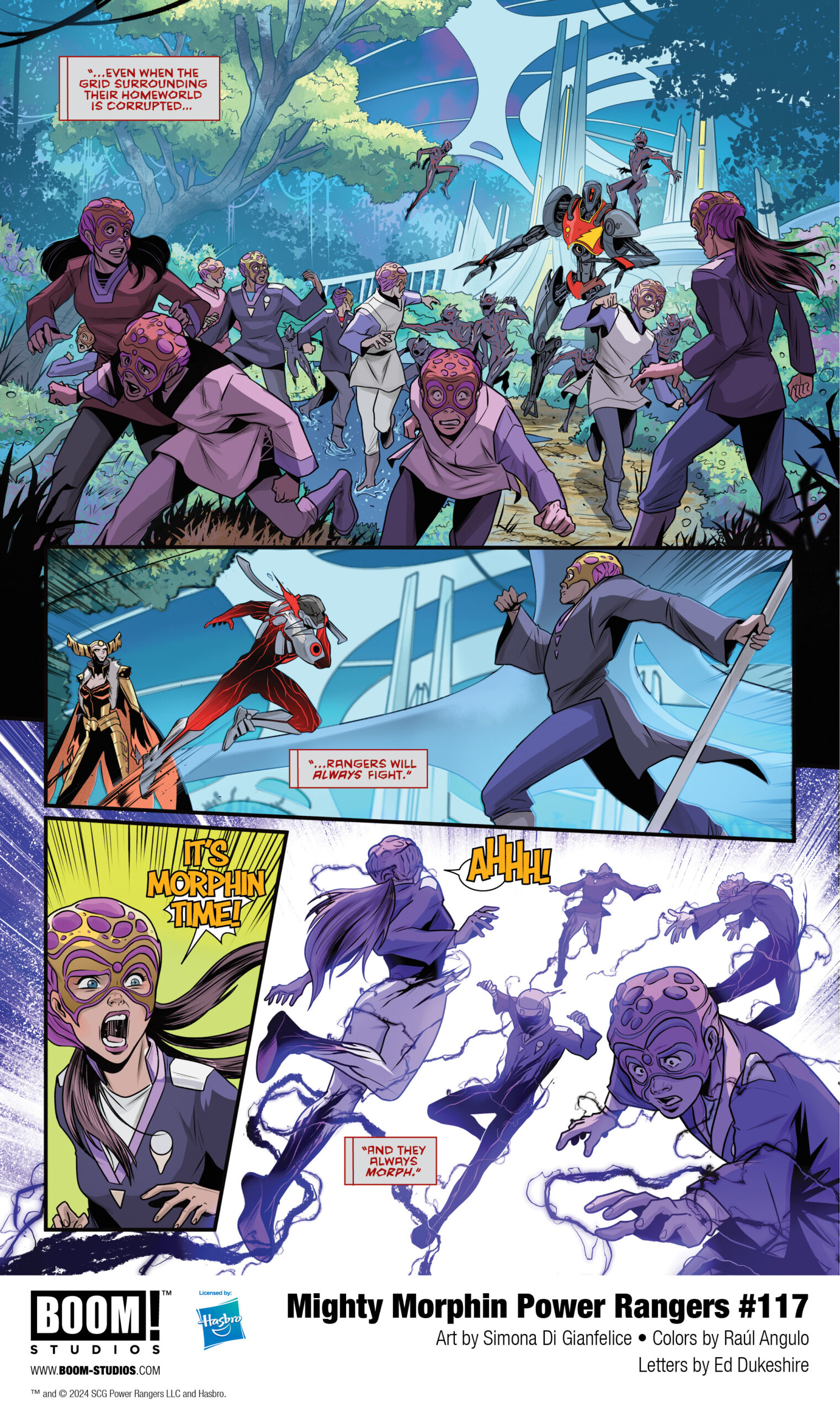 Print copies of MIGHTY MORPHIN POWER RANGERS #117 will be available for sale on February 28, 2023 at local comic book shops (use comicshoplocator.com to find the one nearest you) or at the BOOM! Studios webstore. Digital copies can be purchased from content providers like iBooks, Google Play, and Kindle.