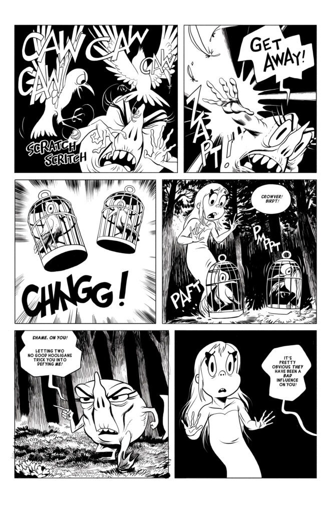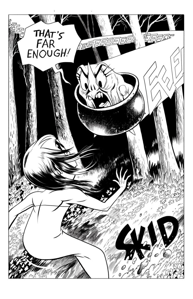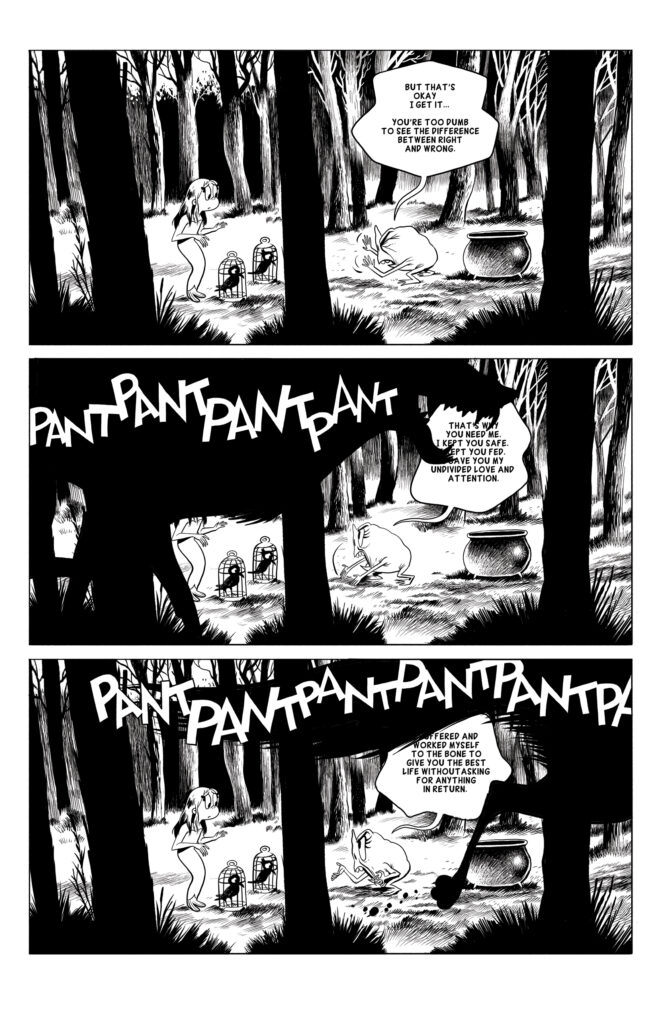 Pegamoose Press emerged quietly during the pandemic as a venue for both Little and Hickey to test the waters of crowdfunding their creator-owned books. With three successful Kickstarters behind them and a growing number of industry award nominations, they’ve decided to expand beyond their own titles and support fresh new voices, starting with the whimsical B&W fantasy epic, Orchard of the Tame.