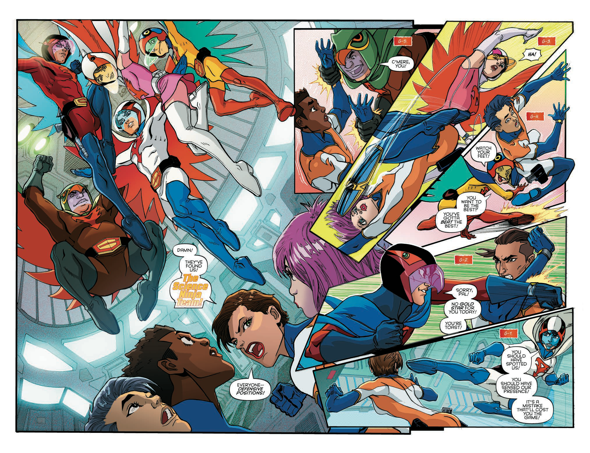 That was good enough for me… until info on the creative team behind the series came out. Stepping out of his horror story wheelhouse is the always outstanding Cullen Bunn (The Sixth Gun, Deadpool Kills the Marvel Universe, Harrow County). On my first read through of the opening issue, I got a kick out of how his dialogue and plotting matched my memories of the source, pulling from the original animated series and expanding on it. Then, because I realized that those memories were flavored more by Gatchaman’s Battle of the Planets incarnation, I tracked down some of the original Japanese episodes to refresh my memory and went at the comic again. It’s all there. The battle cries, the melodrama, the action… great sky wizards, the action! What comes through in Bunn’s writing is a genuine love for the source material, something that should be a given but is too often overlooked when you’re talking about properties like Gatchaman.
