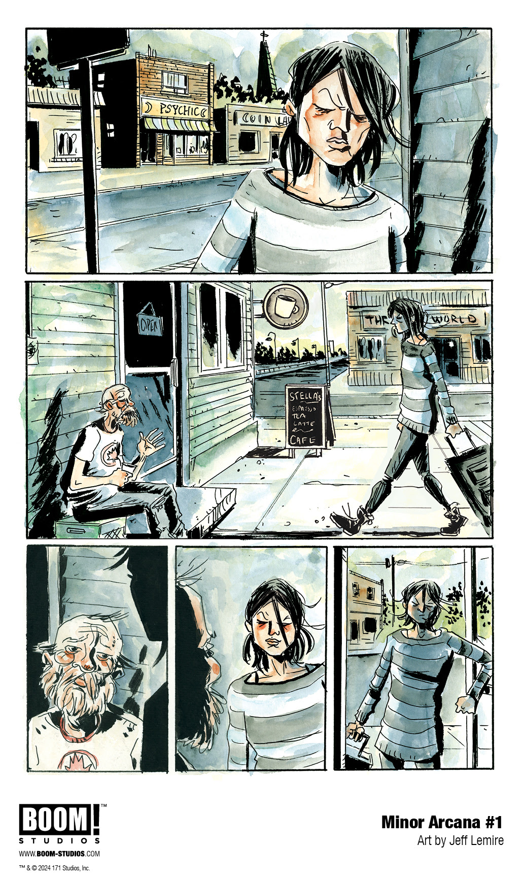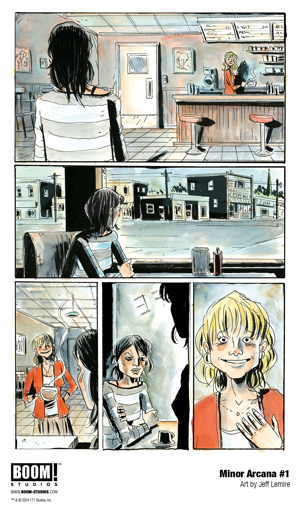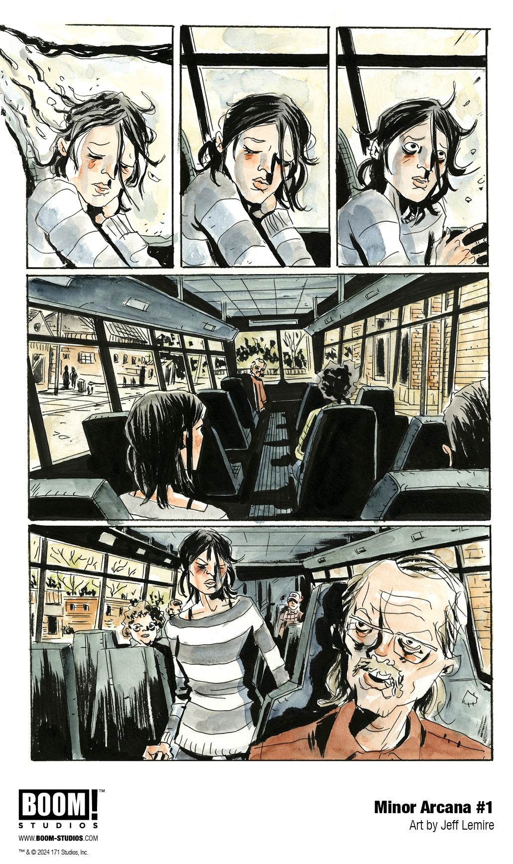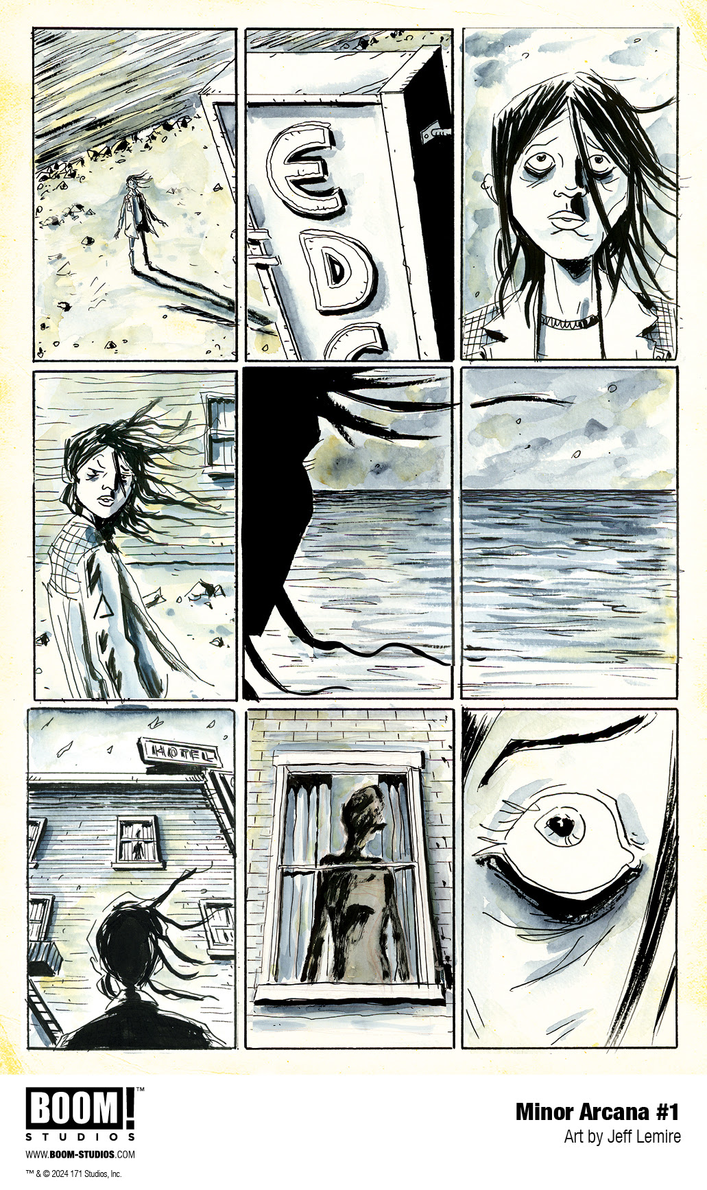 One of the most renowned creators in comics, New York Times bestselling and Eisner Award-winning writer and artist Jeff Lemire, along with the incomparable letterer Steve Wands, brings his first ever creator-owned, ongoing series to BOOM! Studios with an oversized opening chapter of the supernatural in MINOR ARCANA, coming to comic shops September 2024.
