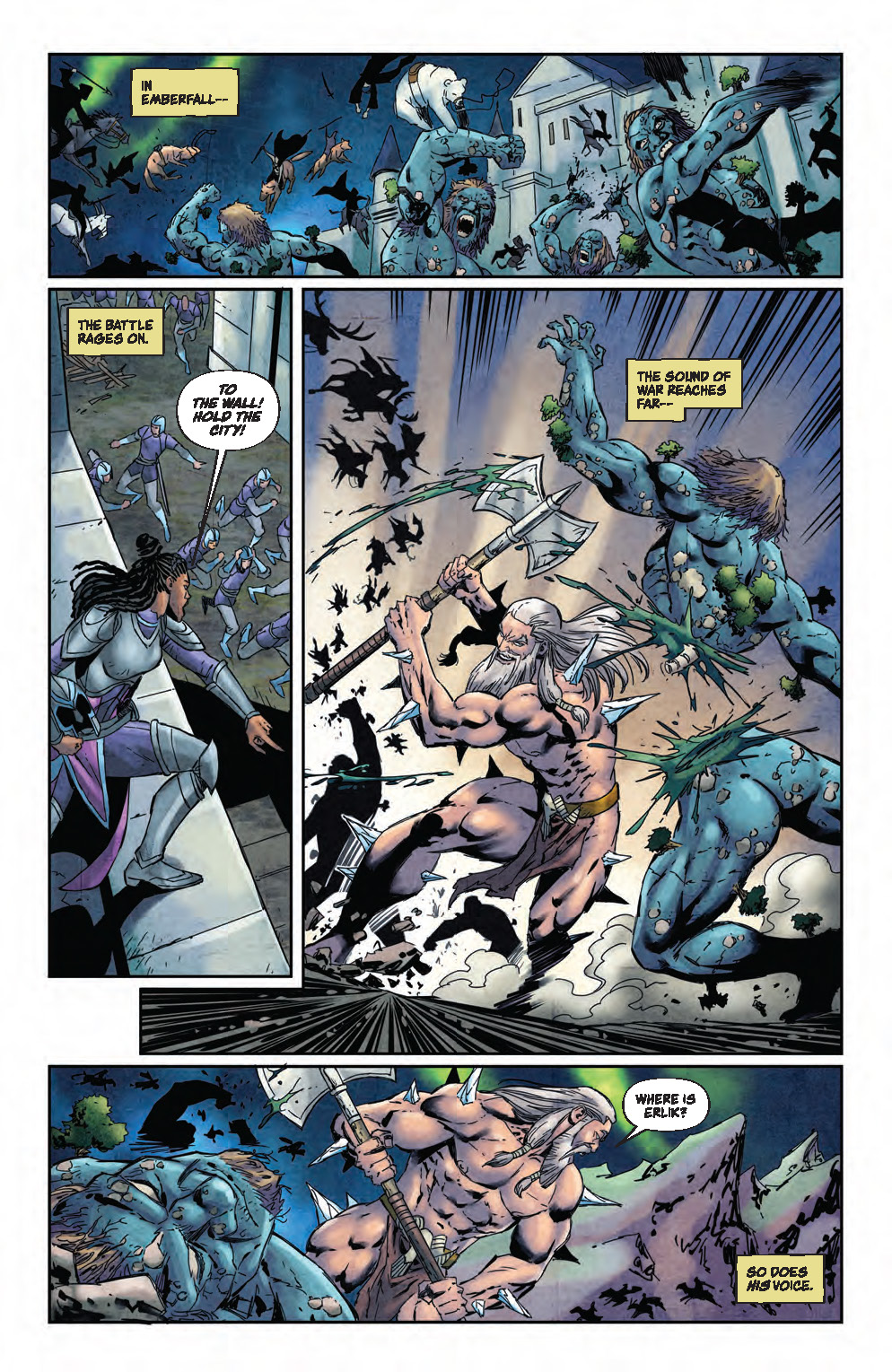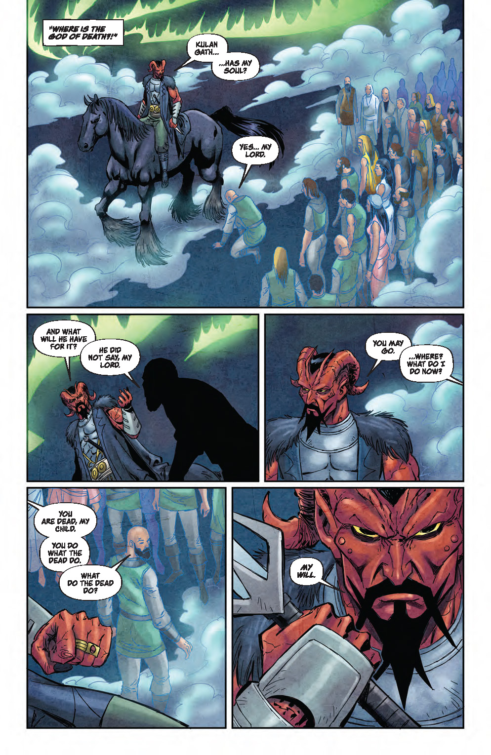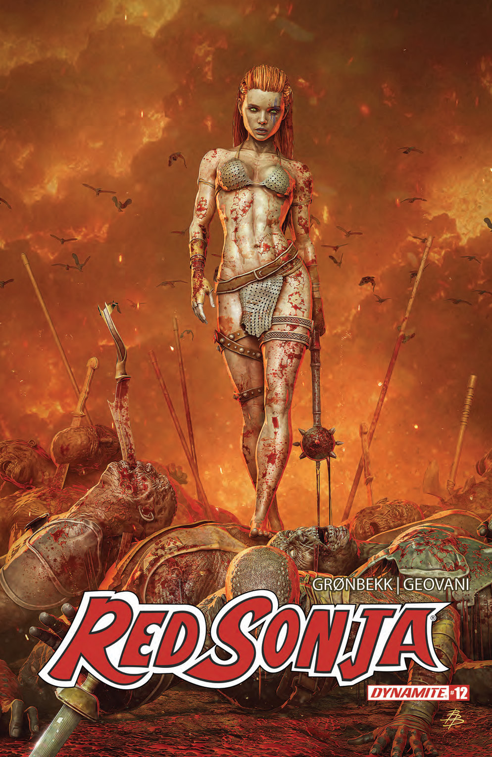 In this issue: With Ymir leading the gods in battle, humanity has no choice but to turn to Kulan Gath for aid. But his promised salvation comes at a price — one that Red Sonja has no intention of paying. Can the She-Devil with a Sword find a way to end the celestial war and prevent the sorcerer from becoming King of Kings? Or will the realm succumb to the overweening ambition of a would-be god? Hewn into the living rock of mortal memory by TORUNN GRØNBEKK and WALTER GEOVANI, Red Sonja #12 is borne aloft on shields illuminated by master limners GEOVANI, LUCIO PARRILLO, BJORN BARENDS, JOSEPH MICHAEL LINSNER, and cosplay by JOANIE BROSAS!