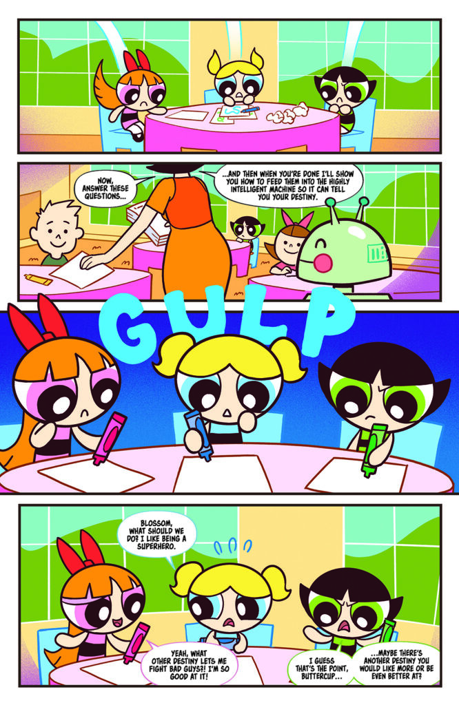 Since that fateful day, BLOSSOM, BUBBLES, and BUTTERCUP have dedicated their lives to fighting evil in every form — tirelessly defending their idyllic city from petty criminals, destructive monsters, and diabolical super-villains alike. Now, this titanic trio returns for more feats of ultra-powered do-goodery, courtesy of the A-list team of writer KELLY THOMPSON (Birds of Prey, Scarlett, Black Widow) and artist PAULINA GANUCHEAU (Wonder Woman, She-Ra), whose bold and adorable (boldorable?) new take on the Heroes of Townsville arrives this July — enhanced by covers from GANUCHEAU, LEONARDO ROMERO, KAREN S. DARBOE, and NICOLETTA BALDARI!