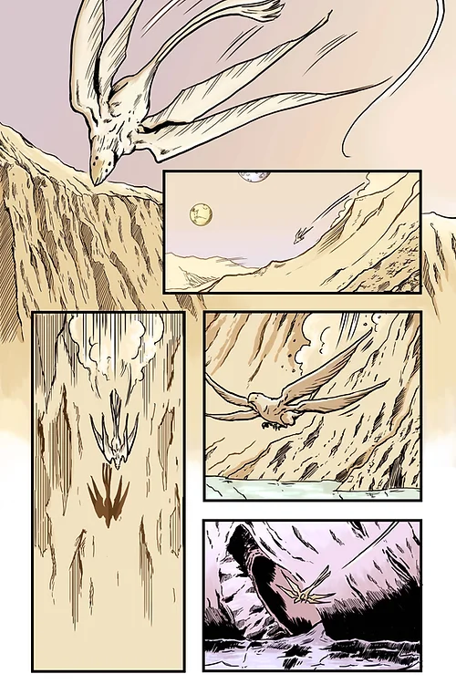 Christopher Reda has been putting together great stories while at the helm of Critical Entertainment, and each comic I’ve read has been far removed from the one before it. Two of his books I’ve seen, this and the western thriller Cowboy with Many Hats, have embraced the minimalist approach. In both cases, the intent of the stories comes through without having to rely on heavy dialogue. In Space Dragon Reda pushes that concept to eleven, running two characters through their intertwined stories without a single word spoken.