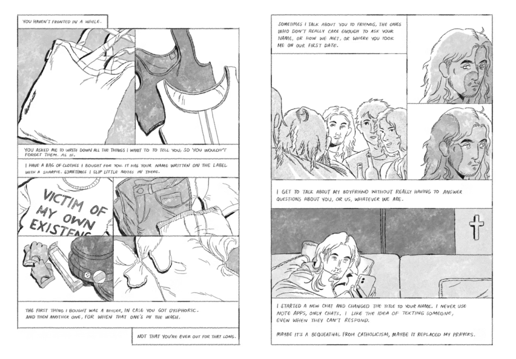 Worried his partner might stop existing, the narrator reflects on everything he’d like to tell him but might never have the strength or opportunity to. A bittersweet queer love story exploring DID, trauma, purpose, and gender identity.