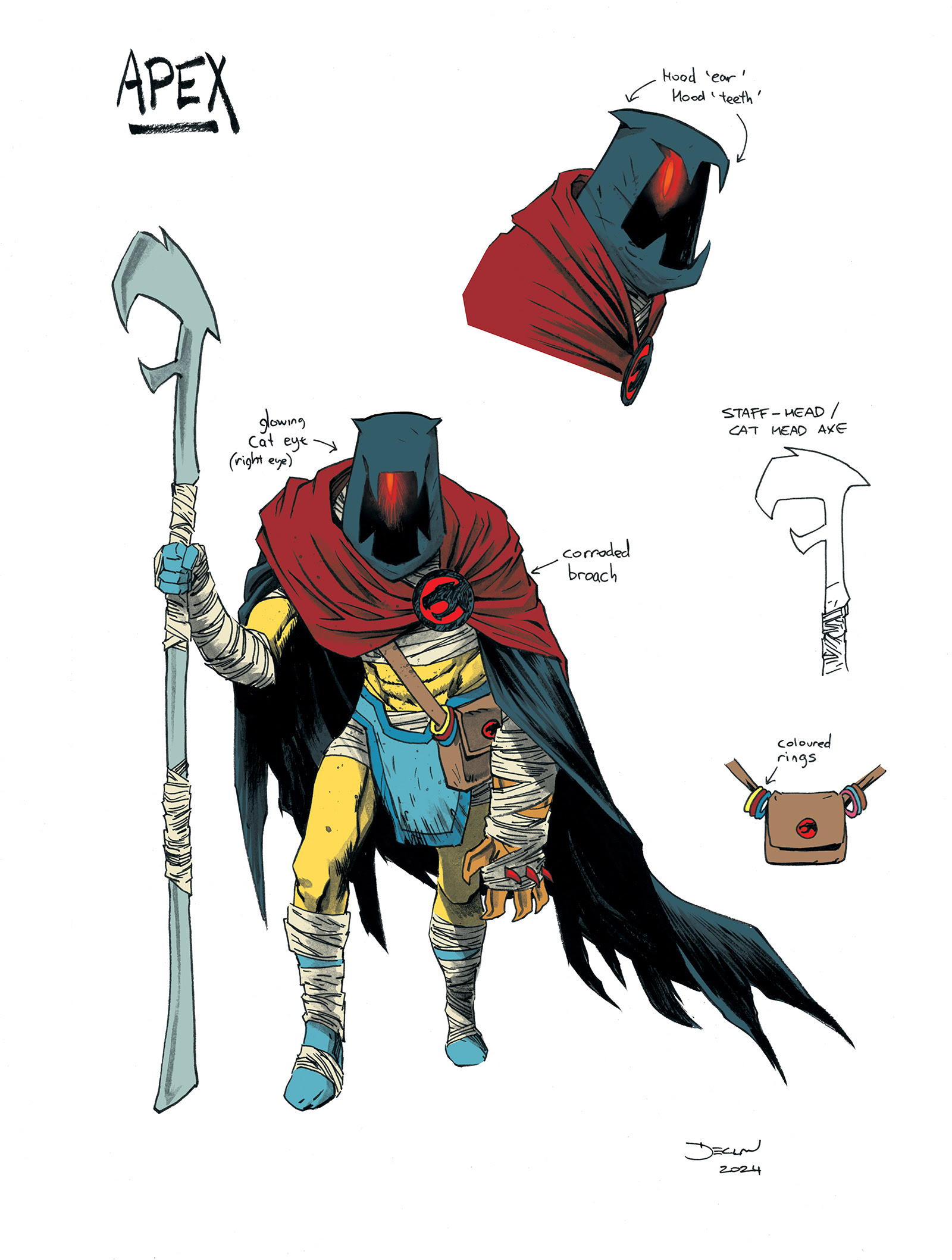 “Taking on the challenge of reintroducing the ThunderCats in this new series was a huge task and I couldn’t be happier with what Drew Moss and I have done with the book,” said writer Declan Shalvey. “With much of the new status quo established in the ‘Omens’ arc, we’re now in a place where we’re building our own ThunderCats lore, and with that comes the mysterious Apex. This character is going to introduce a whole new set of issues for the ThunderCats, especially once we learn their true identity. I was really delighted to be able to design this character too, following on from the designs Drew has previously established.”