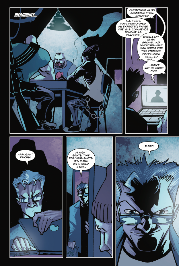 Dr. Thurlow Greave has just released a weaponised contagion on London, turning everyone infected into a mindless zombie. The band are forced to fight their way out, finding themselves not only immune to this infection among their fellow revellers, but with heightened reflexes and aggression as well.