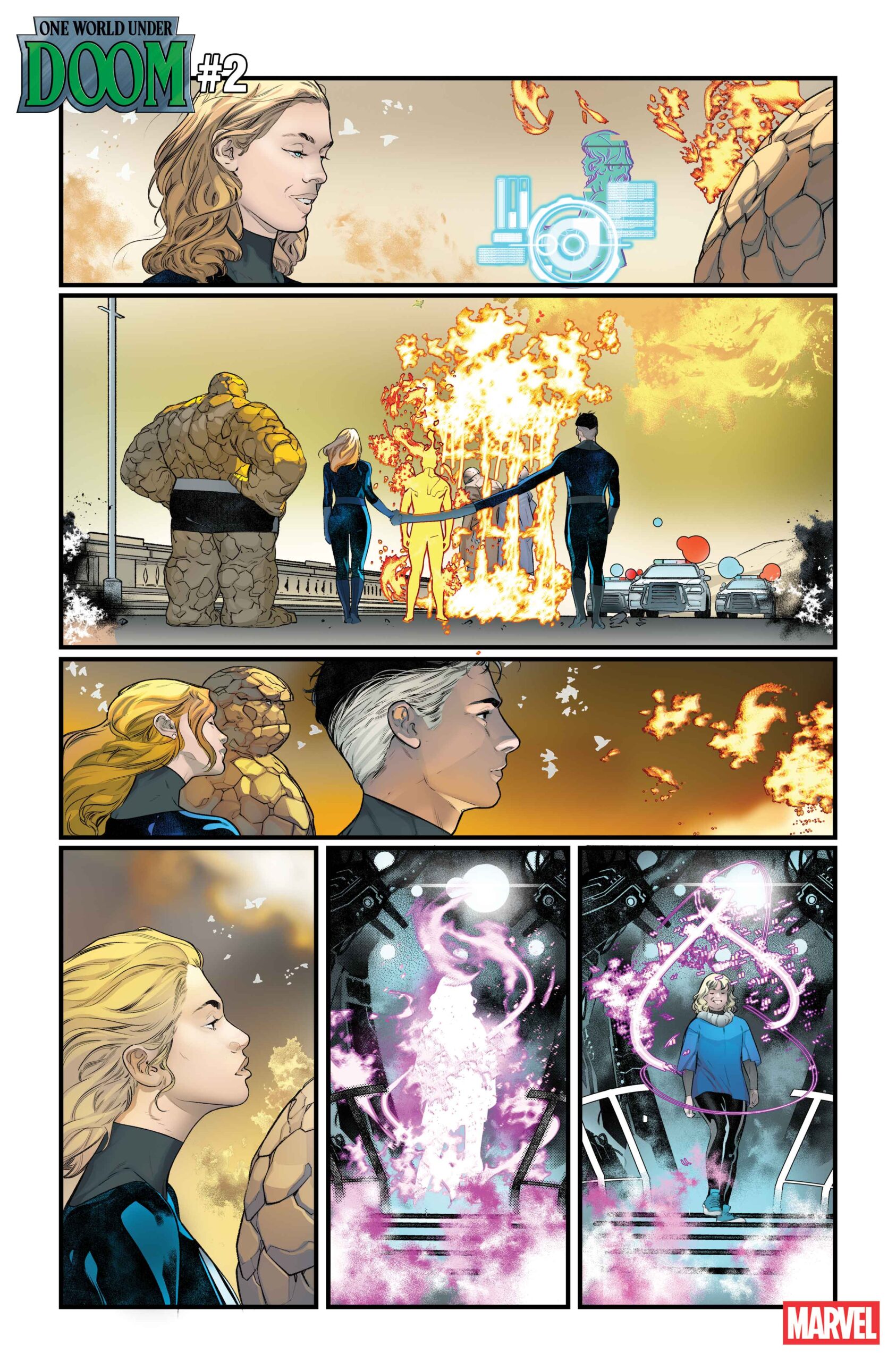 ONE WORLD UNDER DOOM, Marvel’s latest comic book event, launched earlier this week, and astonished readers learned that being ruled by Victor von Doom is nothing short of magnificent! Impacting the status quo of the Marvel Universe for the foreseeable future, the triumphs and trials of Doom’s regime will be told in a nine-issue core series by acclaimed writer Ryan North and superstar artist R.B. Silva, while the iconic supervillain’s ascension reverberates across the line in numerous limited series and tie-in issues. Following a sold-out debut, a Second Printing of ONE WORLD UNDER DOOM #1 is on its way to comic shops next month. And today, loyal subjects can get an advance look at the second issue, which delivers a monumental confrontation between Doom and his archenemies—the Fantastic Four!