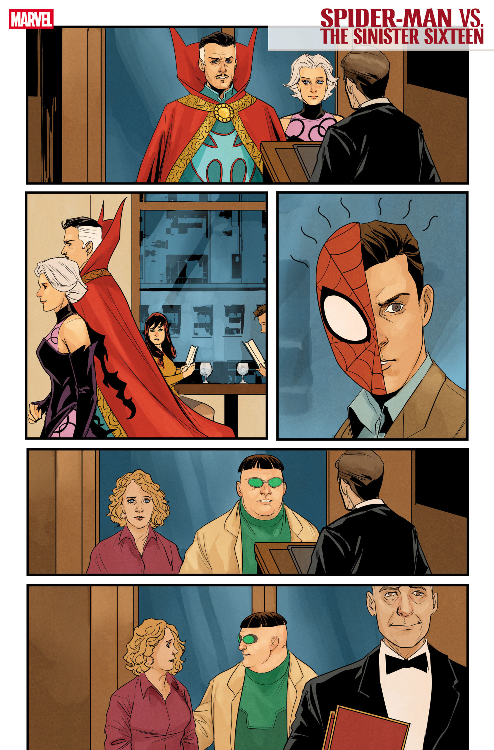 Peter Parker was just trying to have a nice night out with Mary Jane, but wouldn’t you know it: The Parker Luck has filled his evening with an assortment of some of the world’s most vile villains! With Spidey, Thor, Doctor Strange, Magneto, Loki, Doctor Octopus and many more all in one room, things are bound to explode!