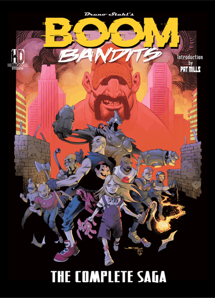 Written and illustrated by Bruno Stahl (Spacewarp, Heavy Metal Magazine), with cover and print colors by Felipe Sobreiro (TMNT, Justice Warriors), and a foreword by the legendary Pat Mills (2000AD, Spacewarp, Marshal Law), Boom Bandits reimagines a dystopian future with bold storytelling and striking visuals. Edited by Odette Schofield, the book seamlessly blends cyberpunk storytelling with biting satire, making it a must-read for fans of rebellious, high-energy sci-fi.