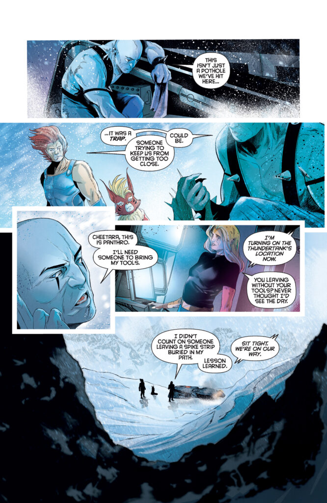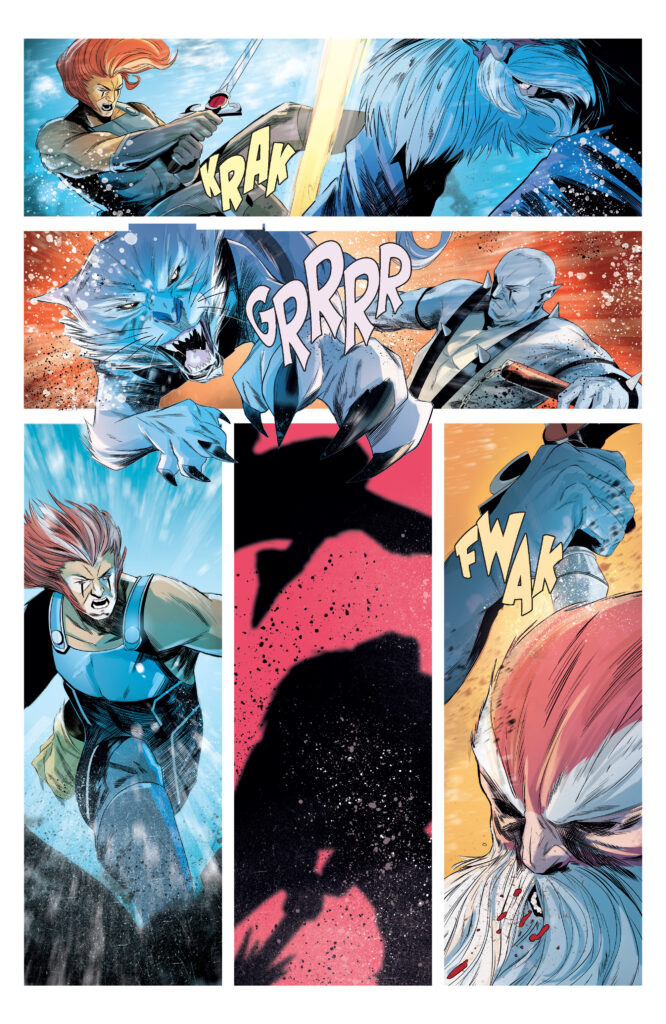 While on a mission in the snowy mountains of Third Earth, the ThunderCats stumble across Snowman, the last of his people, on the eve of the Festival of the Claw — a day of celebration, food, and gifts, and a time for Snowman to pay tribute to those he’s lost. With no others of his kind remaining to pass his traditions on to, Snowman shares them with the ’Cats, who understand all too well the need to persevere in the face of overwhelming loss.