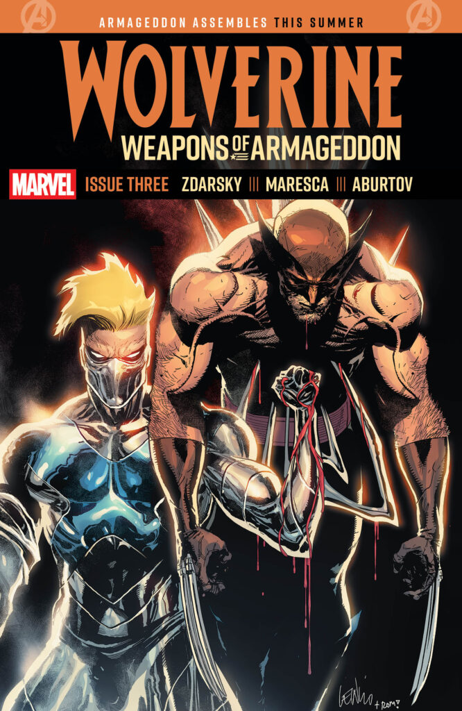 The road to ARMAGEDDON, an upcoming Marvel Comics event written by Chip Zdarsky, officially begins this month in CAPTAIN AMERICA #6, the start of an all-new arc in Zdarsky’s acclaimed run. Zdarsky will also set the stage for the event in WOLVERINE: WEAPONS OF ARMAGEDDON, a four-issue prelude series kicking off next month. Both series team Zdarsky up with top artists including Valerio Schiti, Delio Diaz & Frank Alpizar and Jan Bazaldua on CAPTAIN AMERICA and Luca Maresca on WOLVERINE: WEAPONS OF ARMAGEDDON. Today, fans can peek ahead at what’s to come in April with the reveal of CAPTAIN AMERICA #9-10, new parts of the ARMAGEDDON lead-in arc, and WOLVERINE: WEAPONS OF ARMAGEDDON #3.