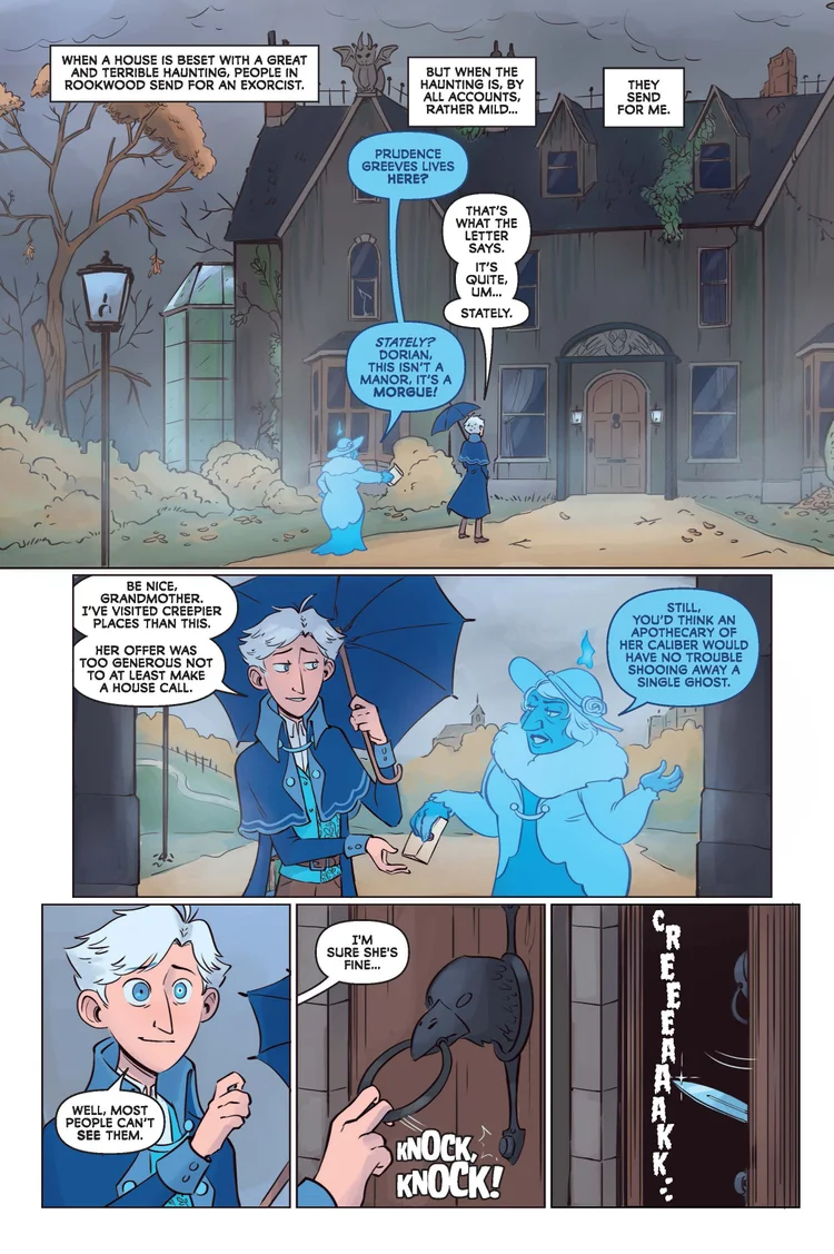 Then one day, the key to Death’s Door is stolen, trapping all the ghosts in the land of the living. Since he’s only one who can see them, the spirits rely on Dorian to retrieve the key before it is too late. If they can’t move on, they’ll soon be consumed by a ghostly rot that has begun to plague them.