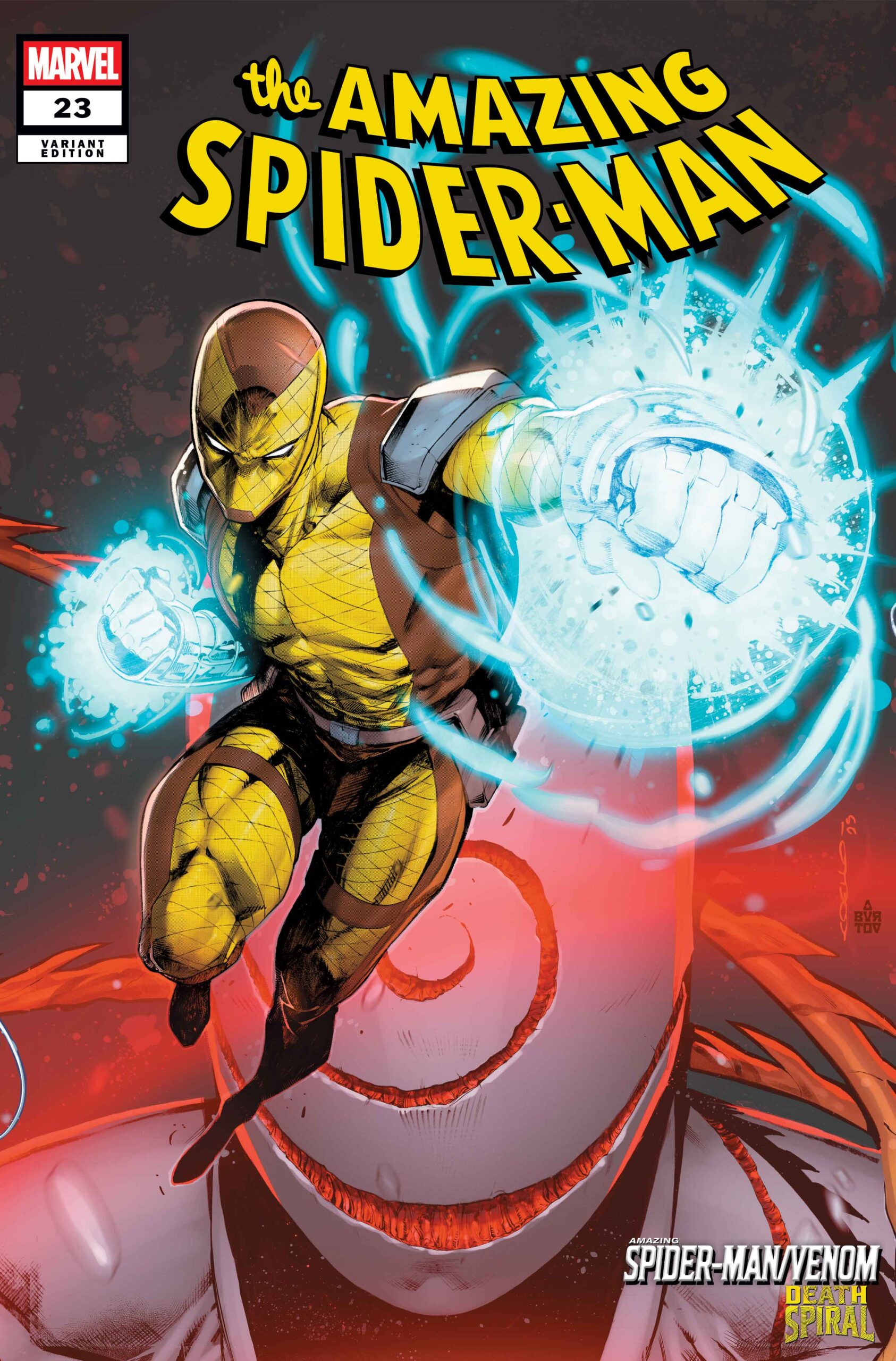 Each chapter of DEATH SPIRAL features a Connecting Variant Cover by Iban Coello, spotlighting a key player of the saga with Torment looming in the background. The complete artwork will then be available as a variant cover for AMAZING SPIDER-MAN/VENOM: DEATH SPIRAL BODY COUNT #1. Today, fans can check out all nine parts and the fully connected piece along with AMAZING SPIDER-MAN/VENOM: DEATH SPIRAL BODY COUNT #1’s main cover by CAFU.